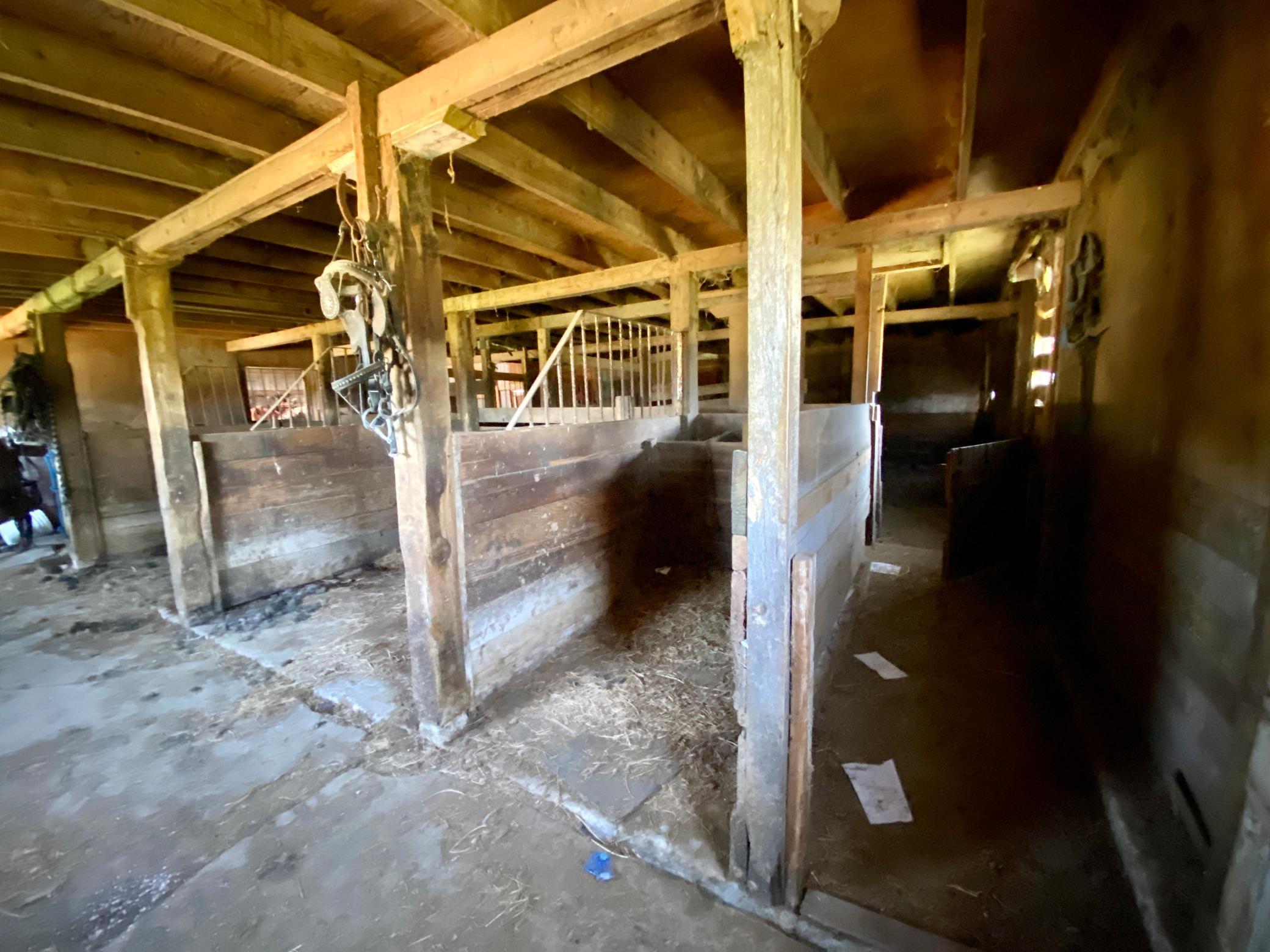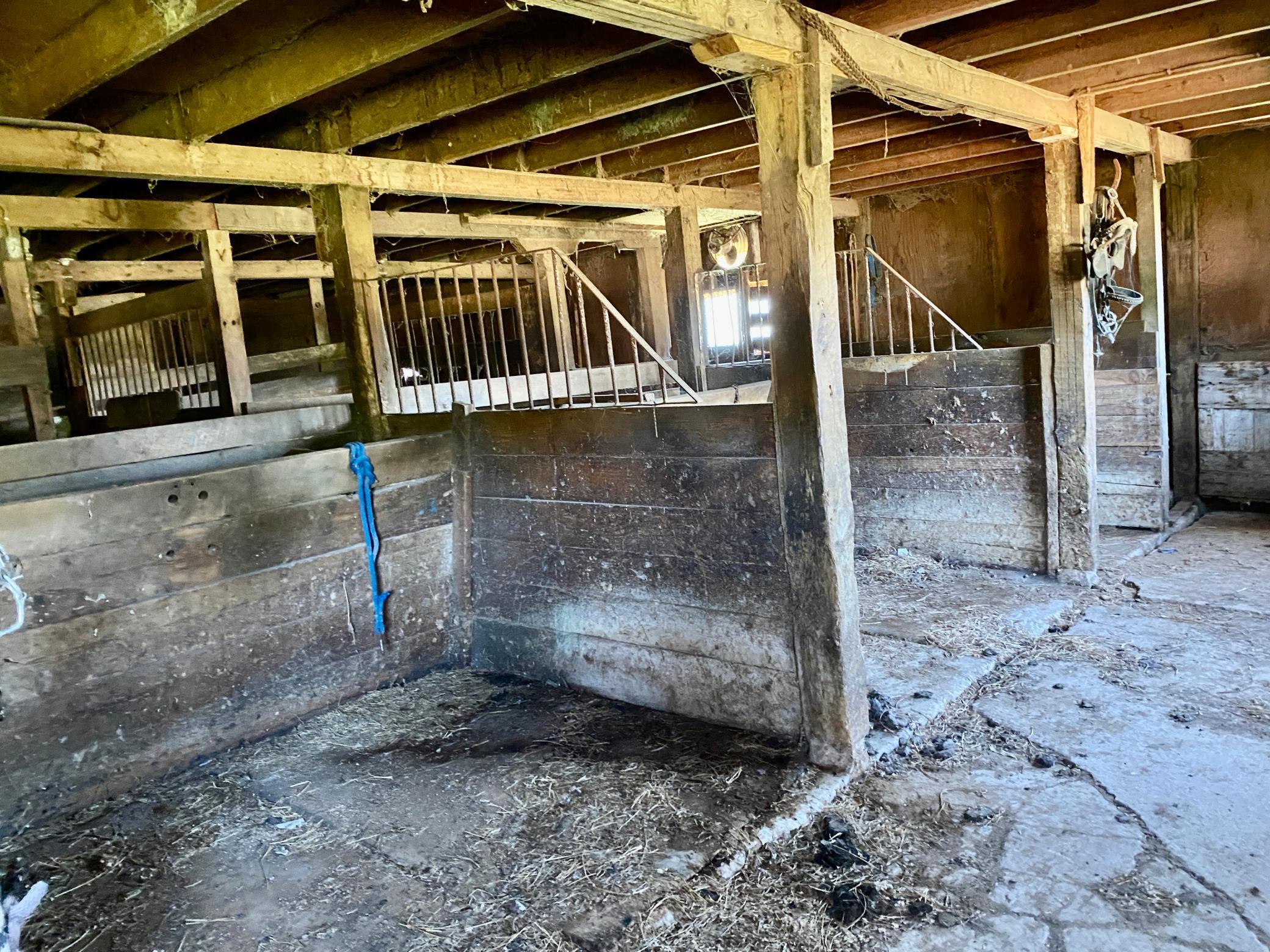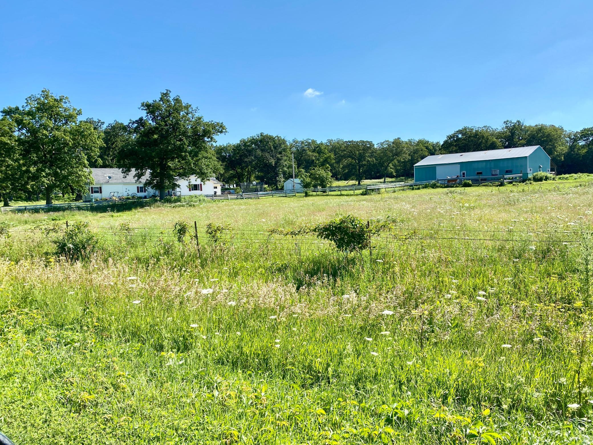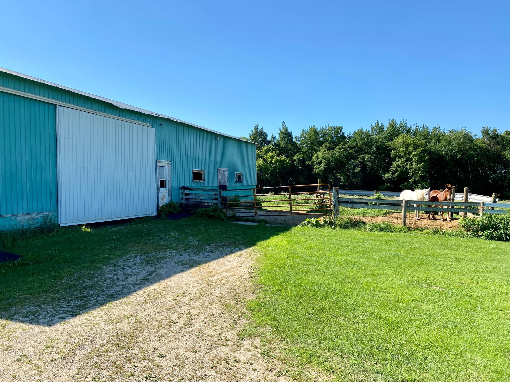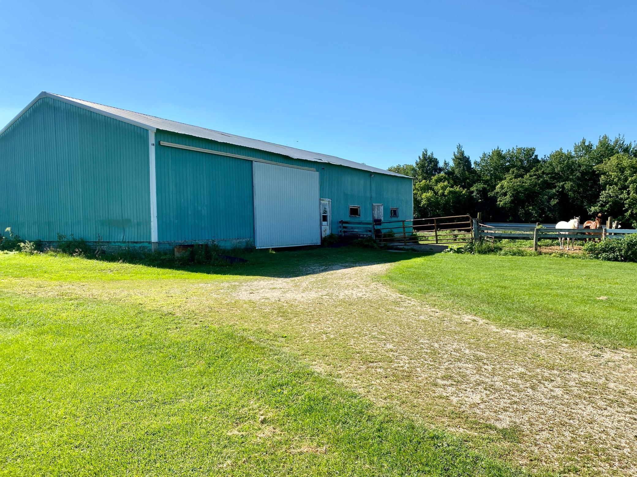 40 x 72 shed with 14 x 36 lean to and is currently set up for horses complete with box stalls and water! Fenced pasture area. 16x22 storage shed. Amazing location right next to state park with bike, walking and horse trails. Lots of wildlife and acreage is partly wooded. Up to code septic and good well!