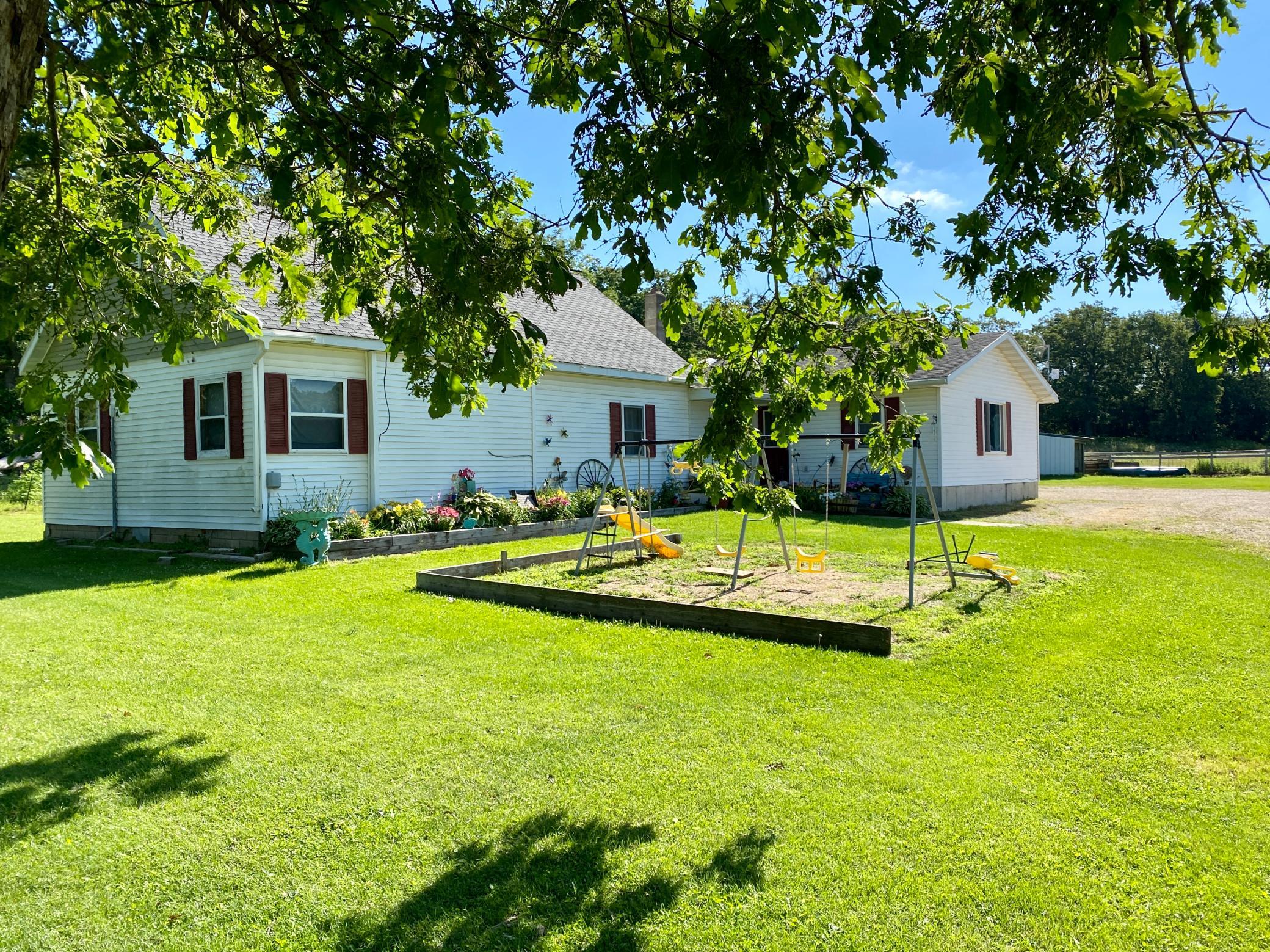 This is what you have been looking for! Approximately 13 acres with 2+ bedroom 1 story home with over 1700 sq ft. Main floor features spacious kitchen and dining area, pantry, living room, laundry room, 2 bedrooms with 2 additional den/bedrooms and bathroom. Attached double garage. 40 x 72 shed with 14 x 36 lean to and is currently set up for horses complete with box stalls and water! Fenced pasture area. 16x22 storage shed. Amazing location right next to state park with bike, walking and horse trails. Lots of wildlife and acreage is partly wooded. Up to code septic and good well! Country living at its best!!