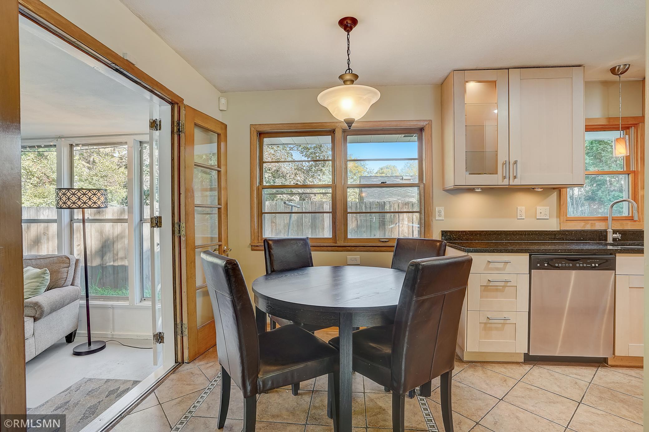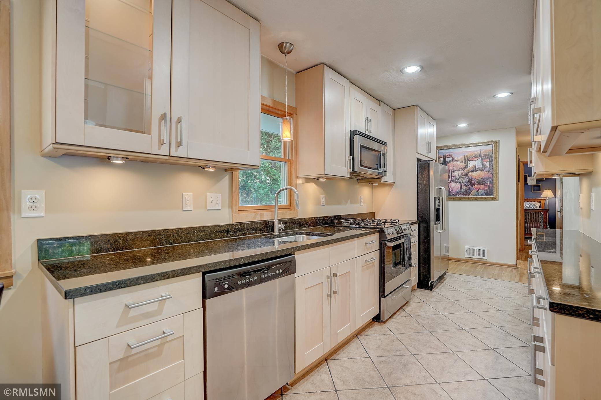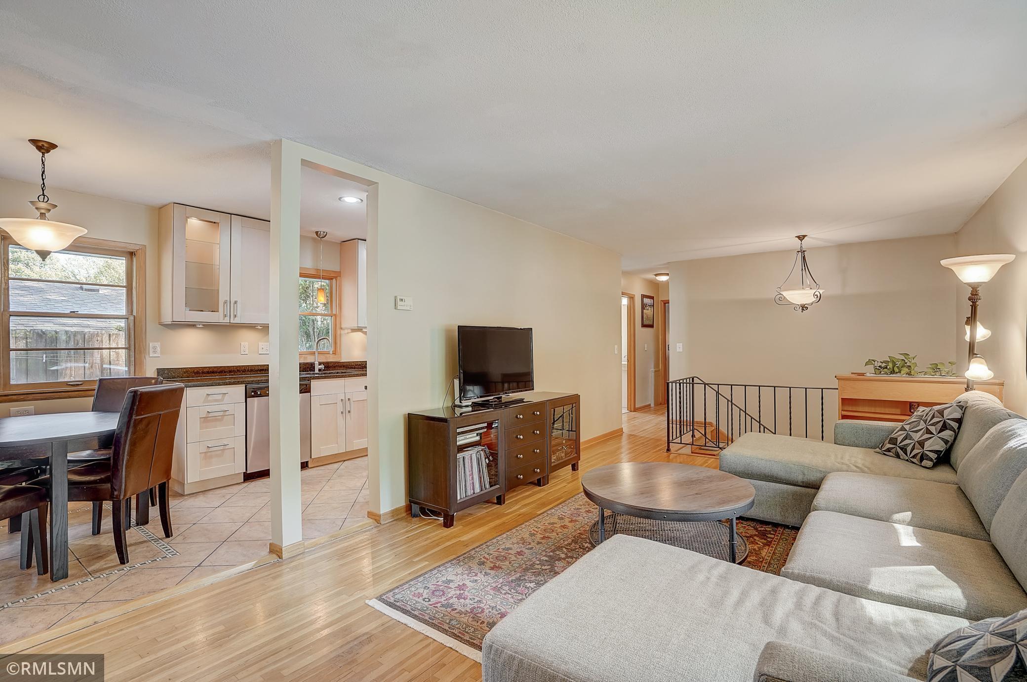 This charming Golden Valley home is located on a quiet, tree lined street on a corner lot with beautiful tree coverage. The kitchen has been updated with new cabinets, granite counters, tile floors and stainless steel appliances. The oversized primary bedroom (18x10!) has a large closet and additional storage. Recently remodeled primary bathroom with new tile, flooring and fixtures. Hardwood floors throughout the living room and bedrooms. The lower level offers a family room, laundry room, and mudroom off the 2-car garage (which also has a new concrete driveway!) and 3 different storage areas. The main level also has a 3 season porch/sun room with an abundance of windows and allows for easy access to the backyard for indoor to outdoor entertaining. The backyard features a concrete patio, storage shed and tiered gardens! Conveniently located just minutes from downtown, close to parks, trails, shopping, restaurants and convenient freeway access. Check it out! Open Sat 11-1 and Sun 12-2