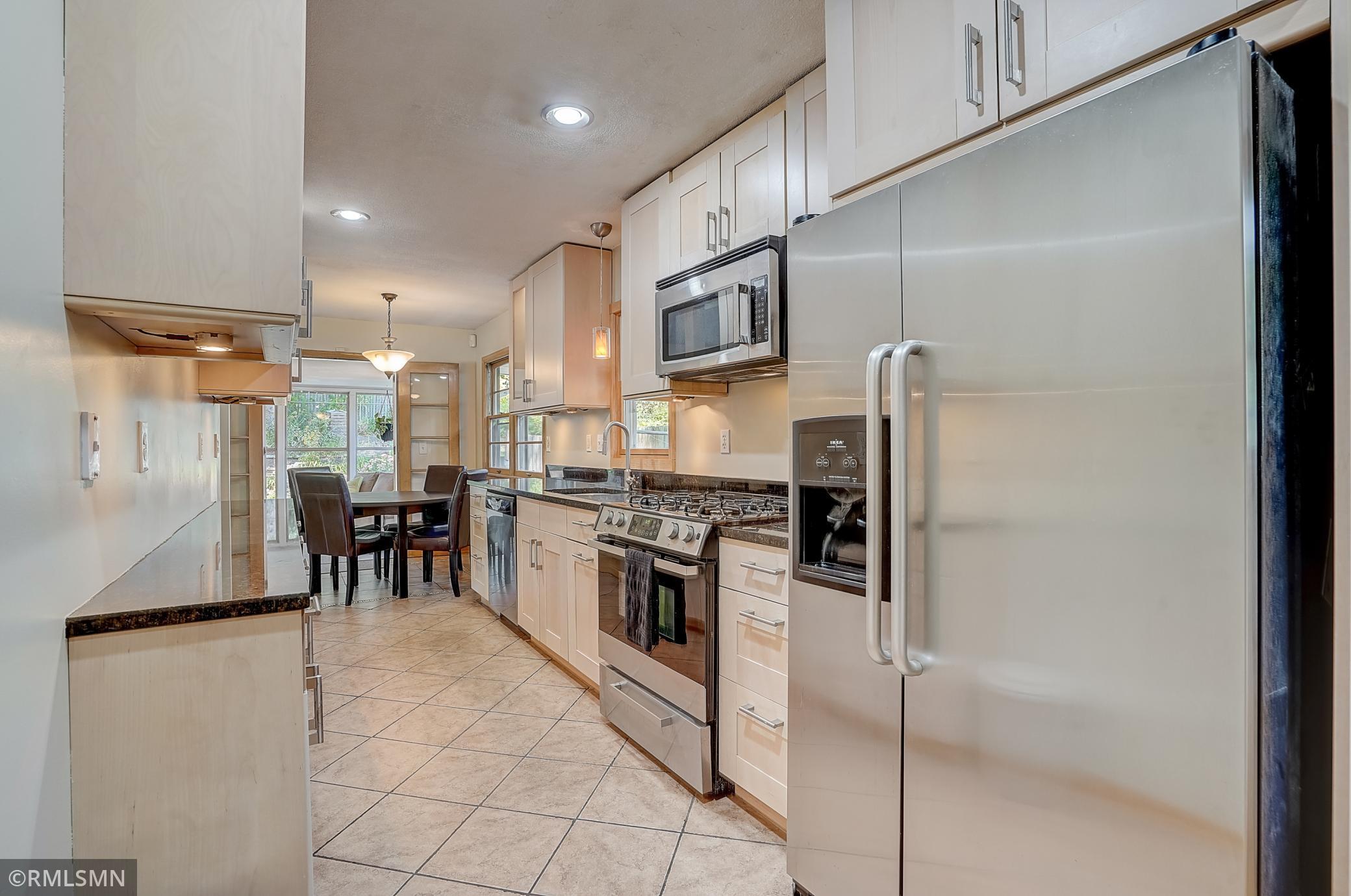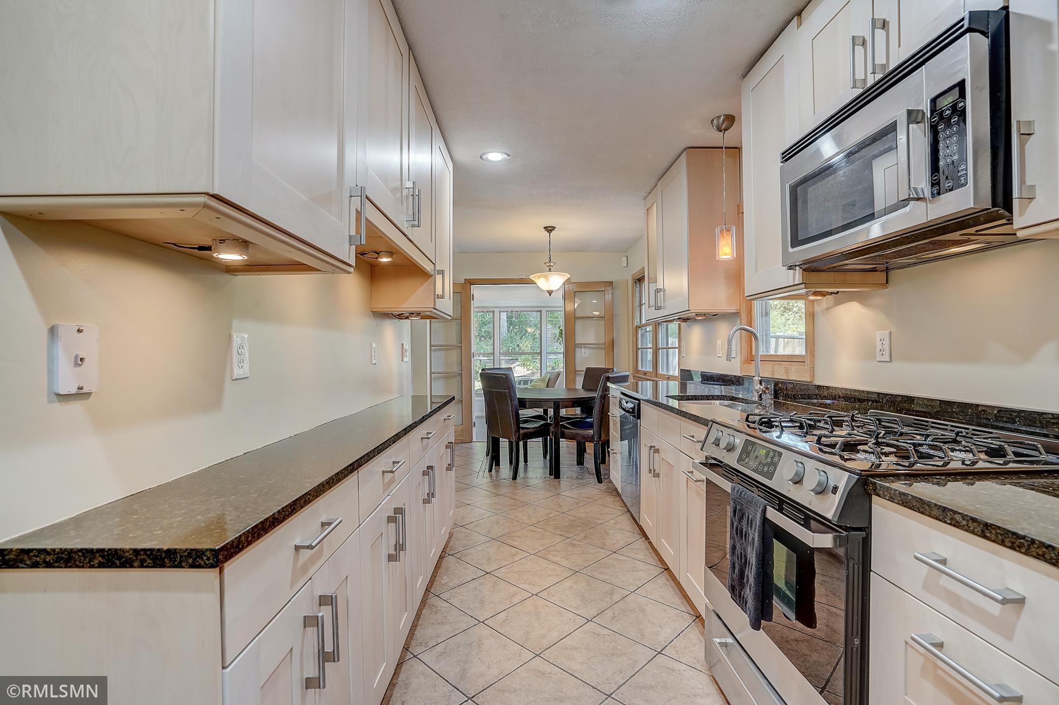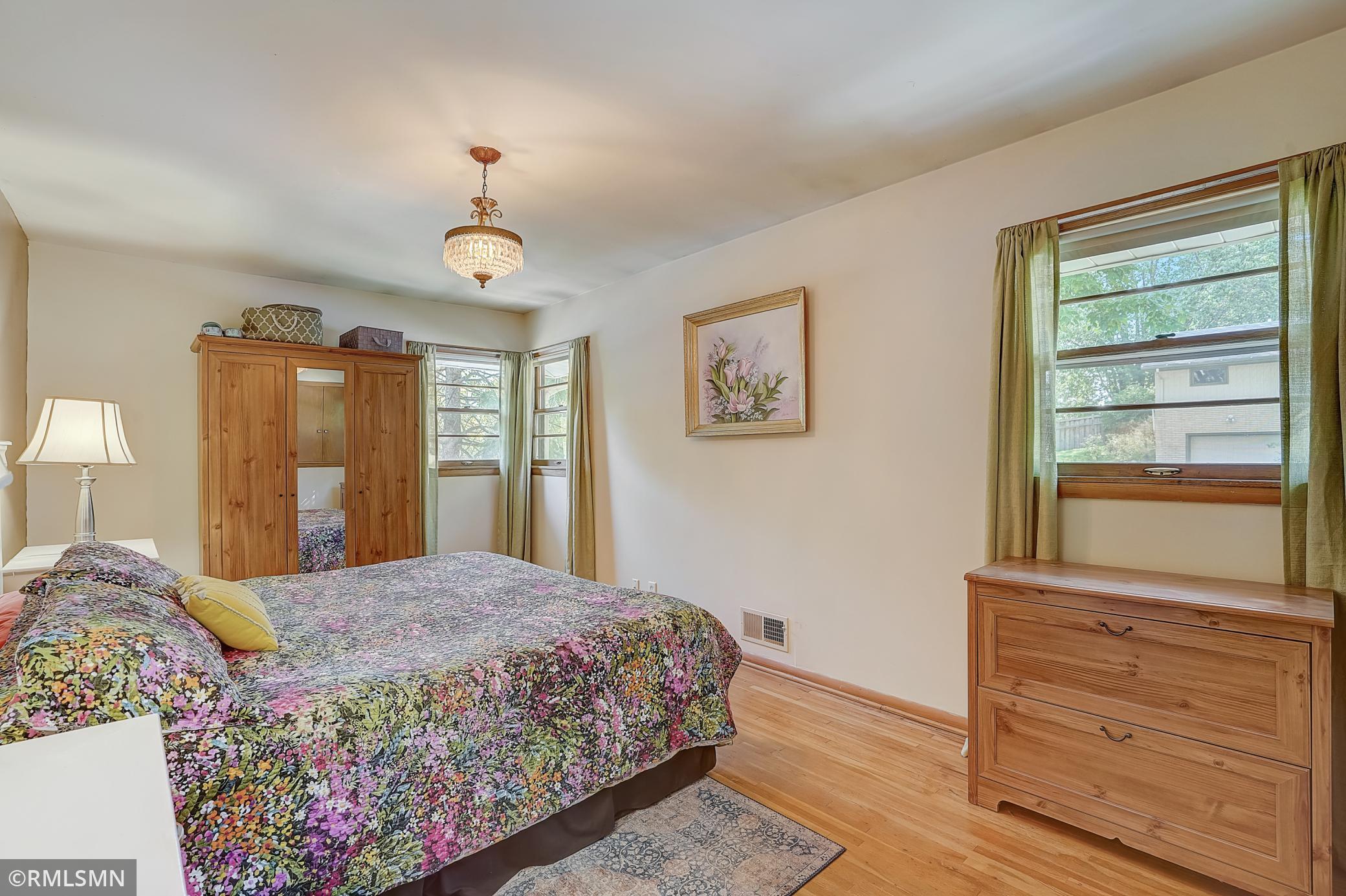This charming Golden Valley home is located on a quiet, tree lined street on a corner lot with beautiful tree coverage. The kitchen has been updated with new cabinets, granite counters, tile floors and stainless steel appliances. The oversized primary bedroom (18x10!) has a large closet and additional storage. Recently remodeled primary bathroom with new tile, flooring and fixtures. Hardwood floors throughout the living room and bedrooms. The lower level offers a family room, laundry room, and mudroom off the 2-car garage (which also has a new concrete driveway!) and 3 different storage areas. The main level also has a 3 season porch/sun room with an abundance of windows and allows for easy access to the backyard for indoor to outdoor entertaining. The backyard features a concrete patio, storage shed and tiered gardens! Conveniently located just minutes from downtown, close to parks, trails, shopping, restaurants and convenient freeway access. Check it out! Open Sat 11-1 and Sun 12-2