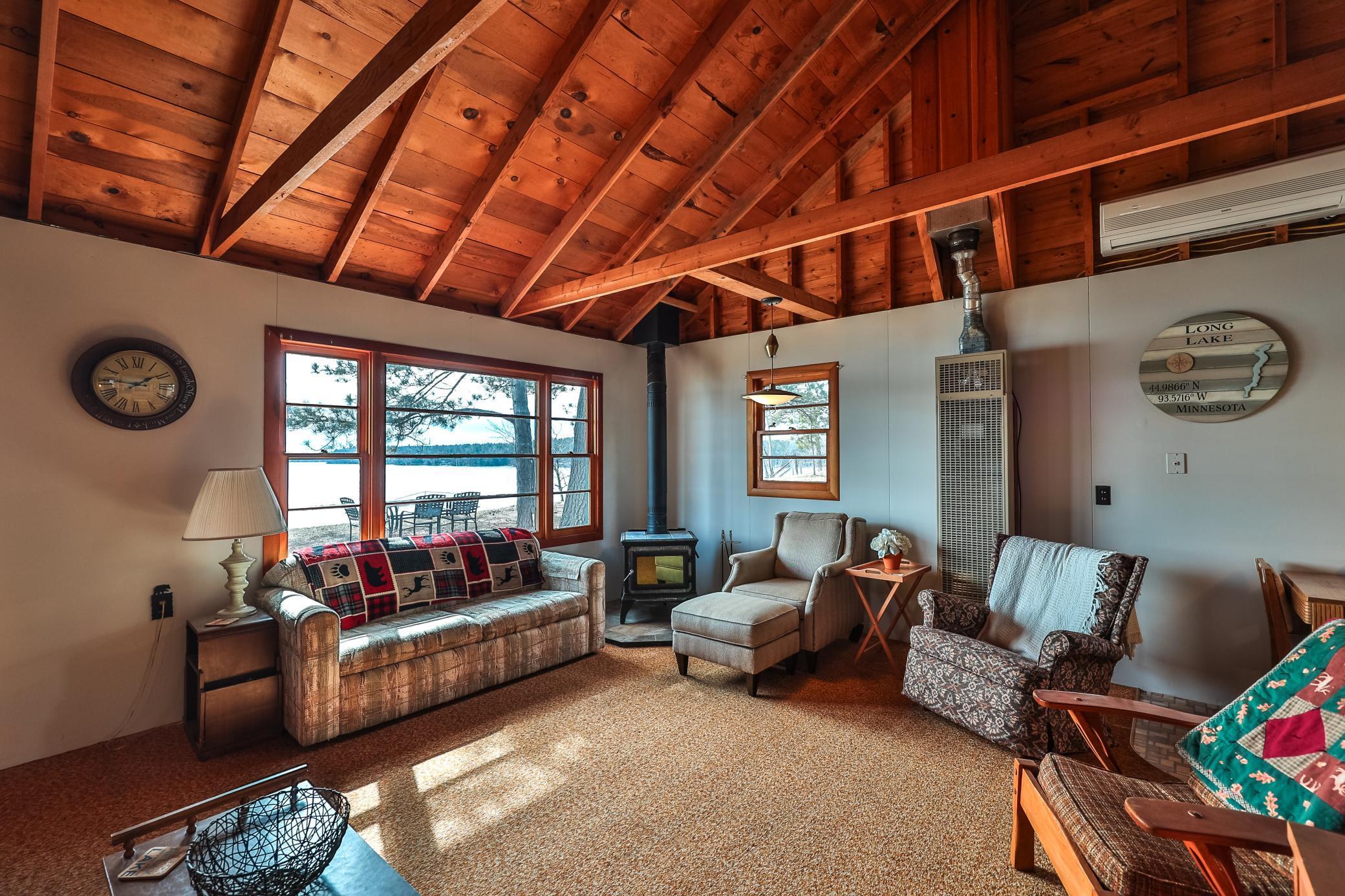 Public Remarks: Come enjoy perfect sand swimming and south facing panoramic lake views on beautiful Long Lake in Park Rapids. Long Lake is known for excellent fishing and recreational activities. It's location close to Park Rapids and all it's summer events make this a perfect weekend getaway. The cozy cabin features 2 beds, 1 bath and a loft that's perfect for extra sleeping. Stay comfortable with a wall furnace, heat pump and mini-split for A/C. On chilly nights cozy up next to the new Wilkening Soapstone fireplace for that true up north cabin feel. Outside you'll find the double lot offers plenty of flat ground for entertaining and a smokeless firepit so you can enjoy your lake views around a campfire. High speed internet is available. This cabin is in great shape and comes furnished. Scheduled your showing for this turn-key cabin today!
