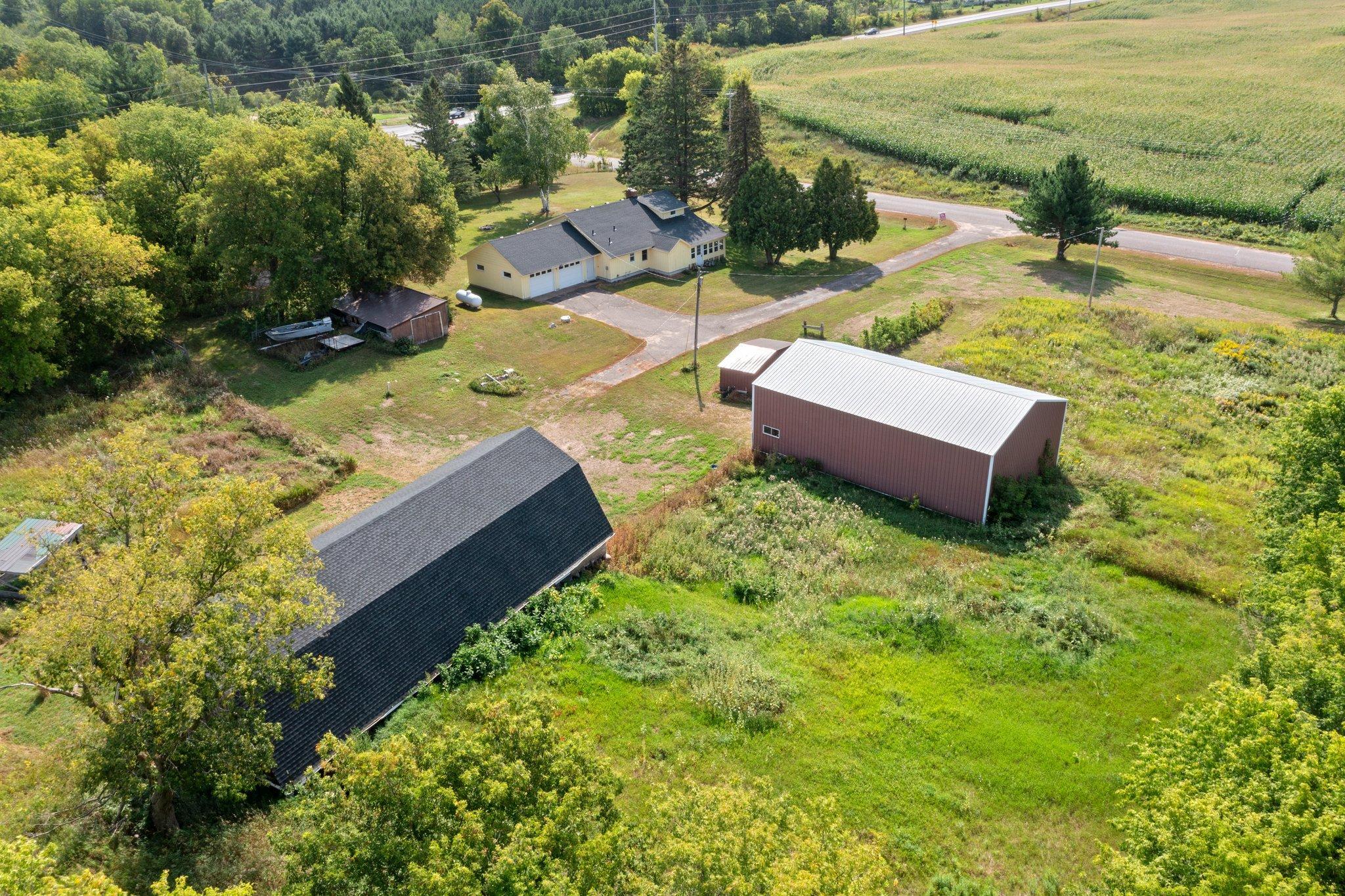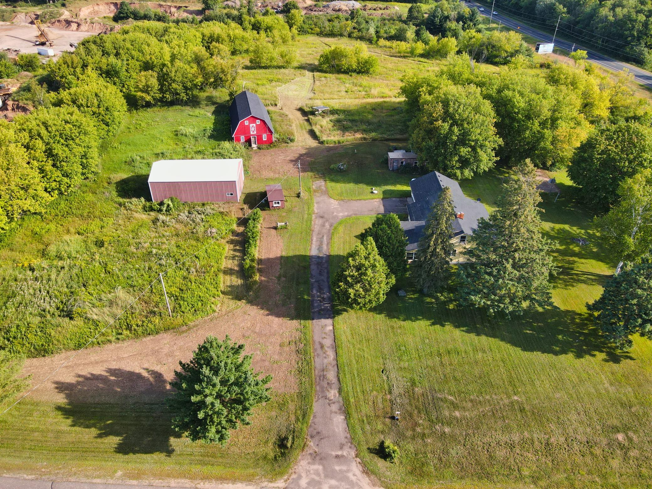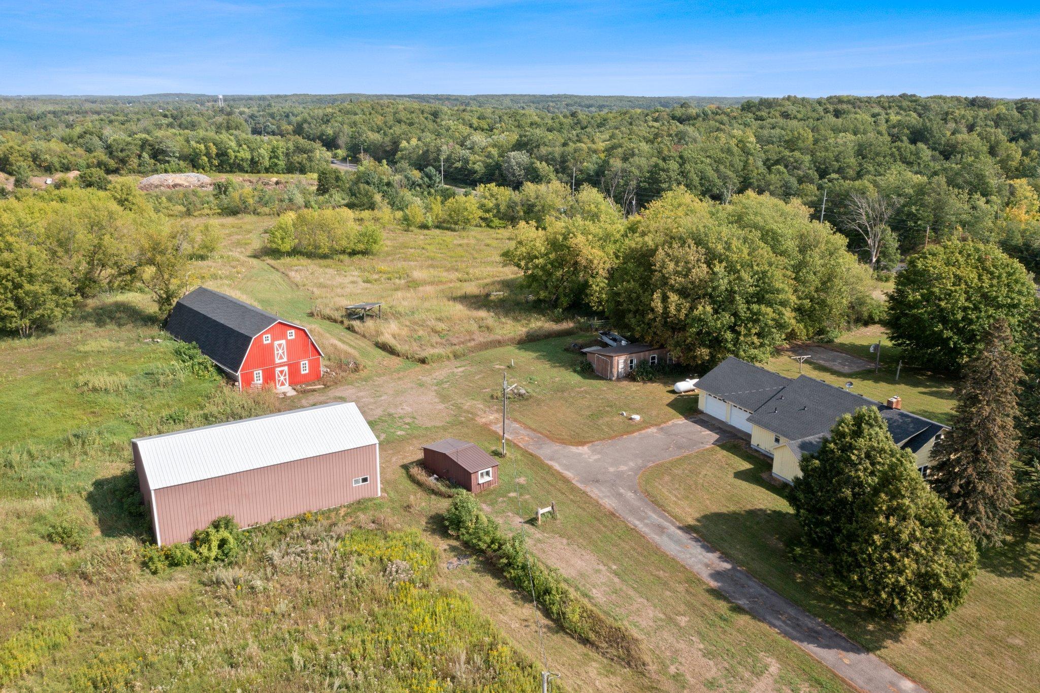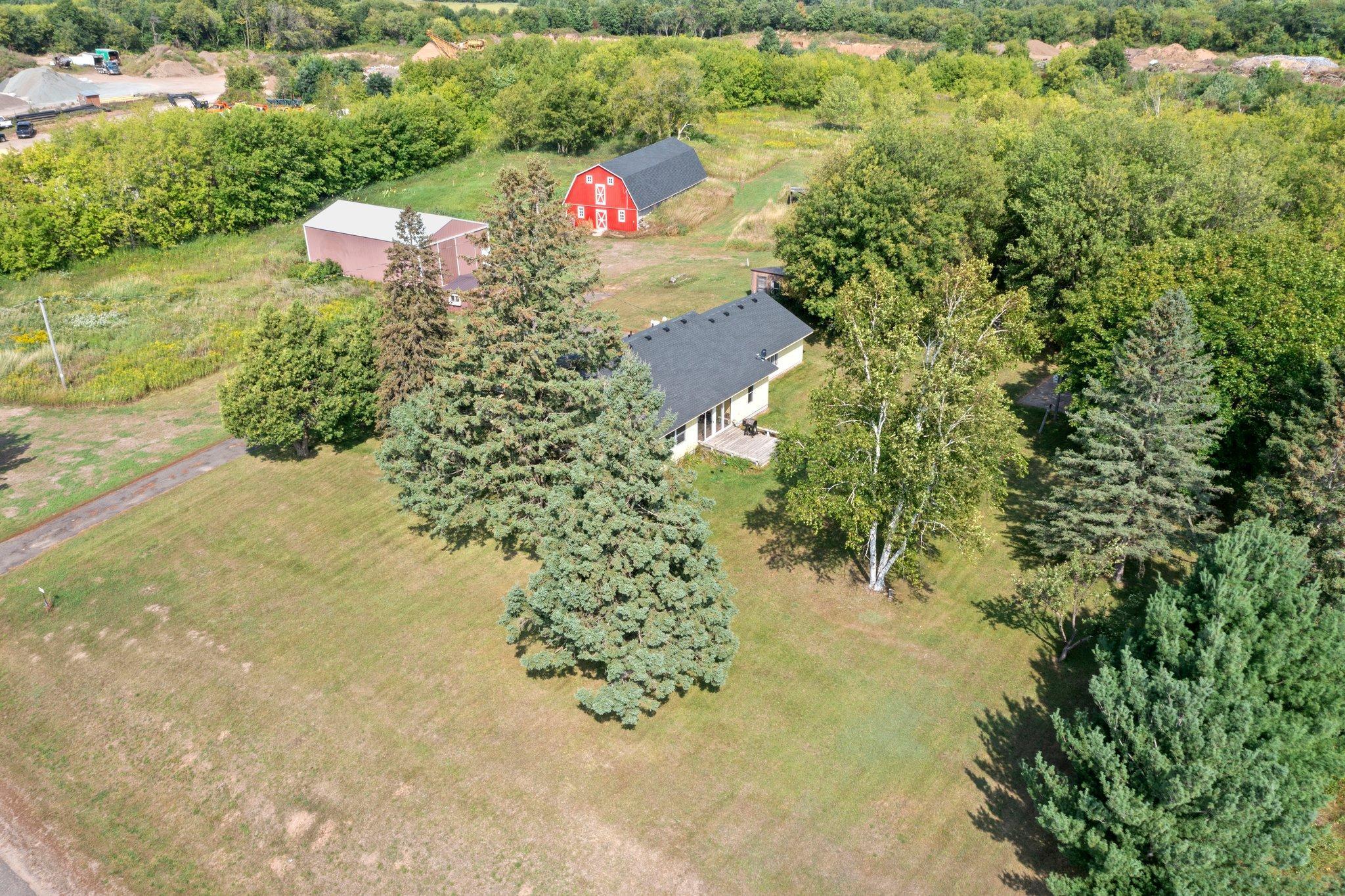 This ranch style house makes a great place to have a hobby or horse farm located just off Hwy 35 for easy commuting. This 5.94 acres comes with a large 30x50 pole shed and a barn with plenty of room for a pasture and field. New roof on house and barn in 2022. Main floor living with charming features, two-sided fireplace, kitchen, living room, two bedrooms, full bathroom, sunroom and and laundry room, along with upper bedroom. A large yard with space for entertaining. Close to the Village of Luck. Gandy Dancer Trail located across Hwy 35. Country living while being close to local amenities. Come take a look!
