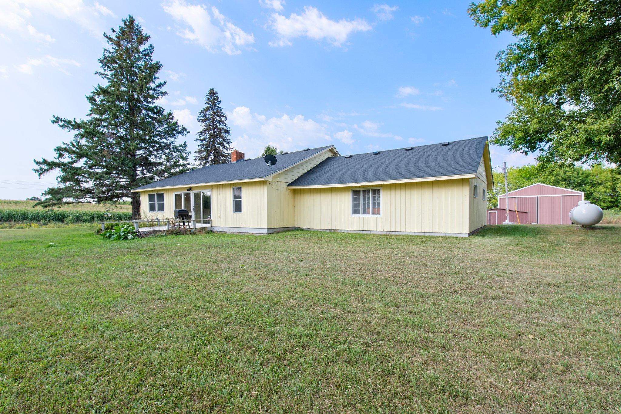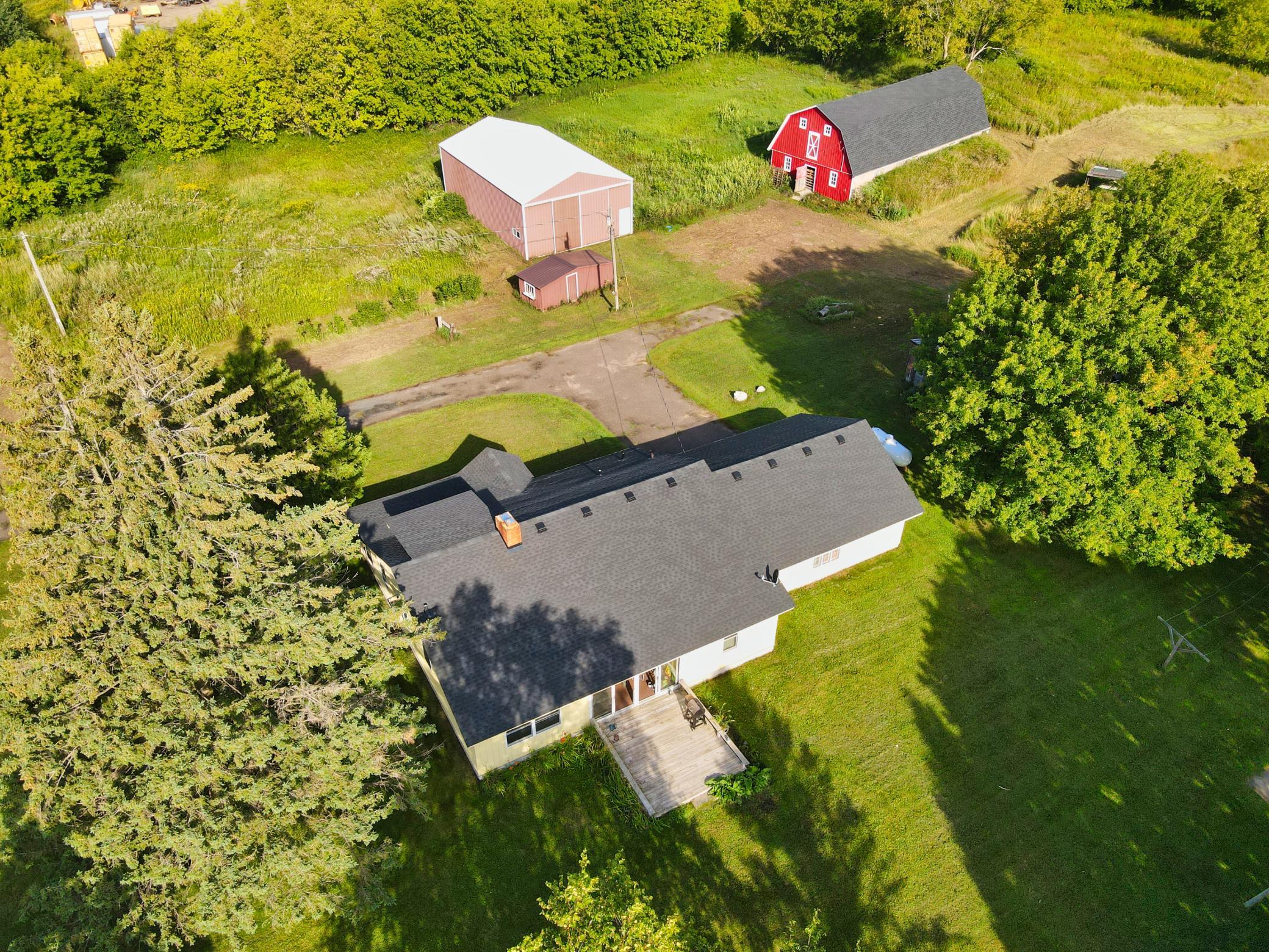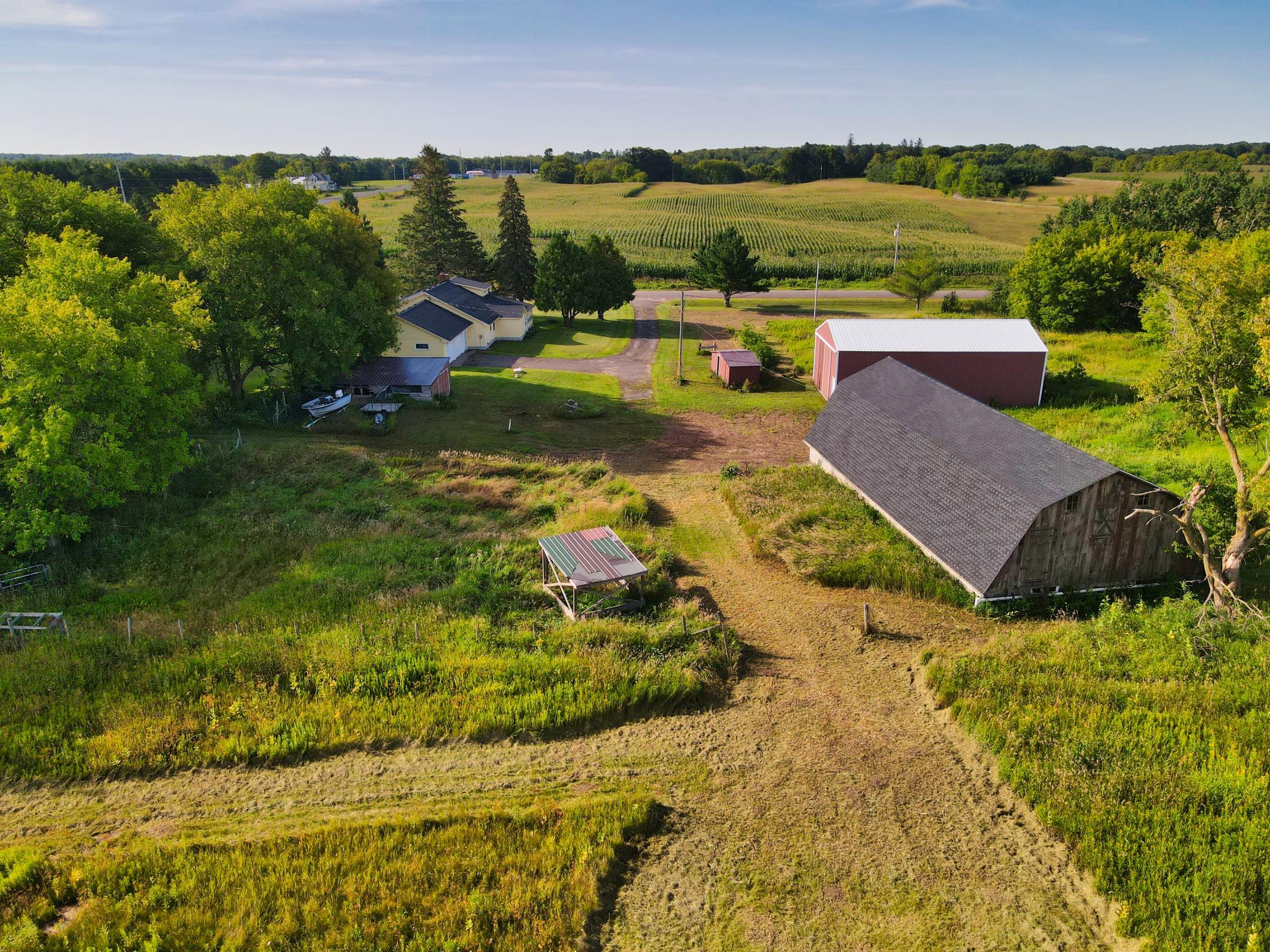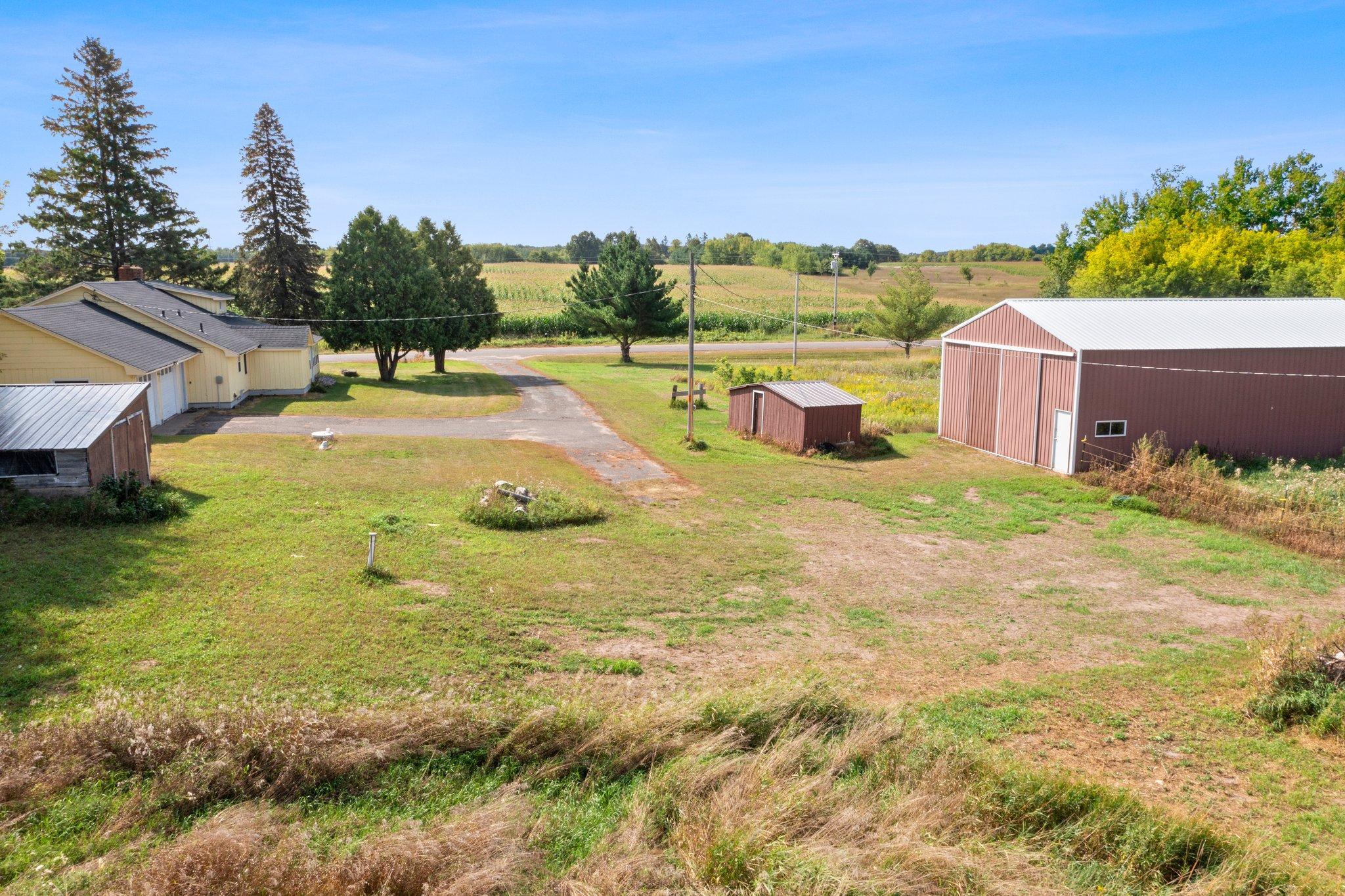 This ranch style house makes a great place to have a hobby or horse farm located just off Hwy 35 for easy commuting. This 5.94 acres comes with a large 30x50 pole shed and a barn with plenty of room for a pasture and field. New roof on house and barn in 2022. Main floor living with charming features, two-sided fireplace, kitchen, living room, two bedrooms, full bathroom, sunroom and and laundry room, along with upper bedroom. A large yard with space for entertaining. Close to the Village of Luck. Gandy Dancer Trail located across Hwy 35. Country living while being close to local amenities. Come take a look!