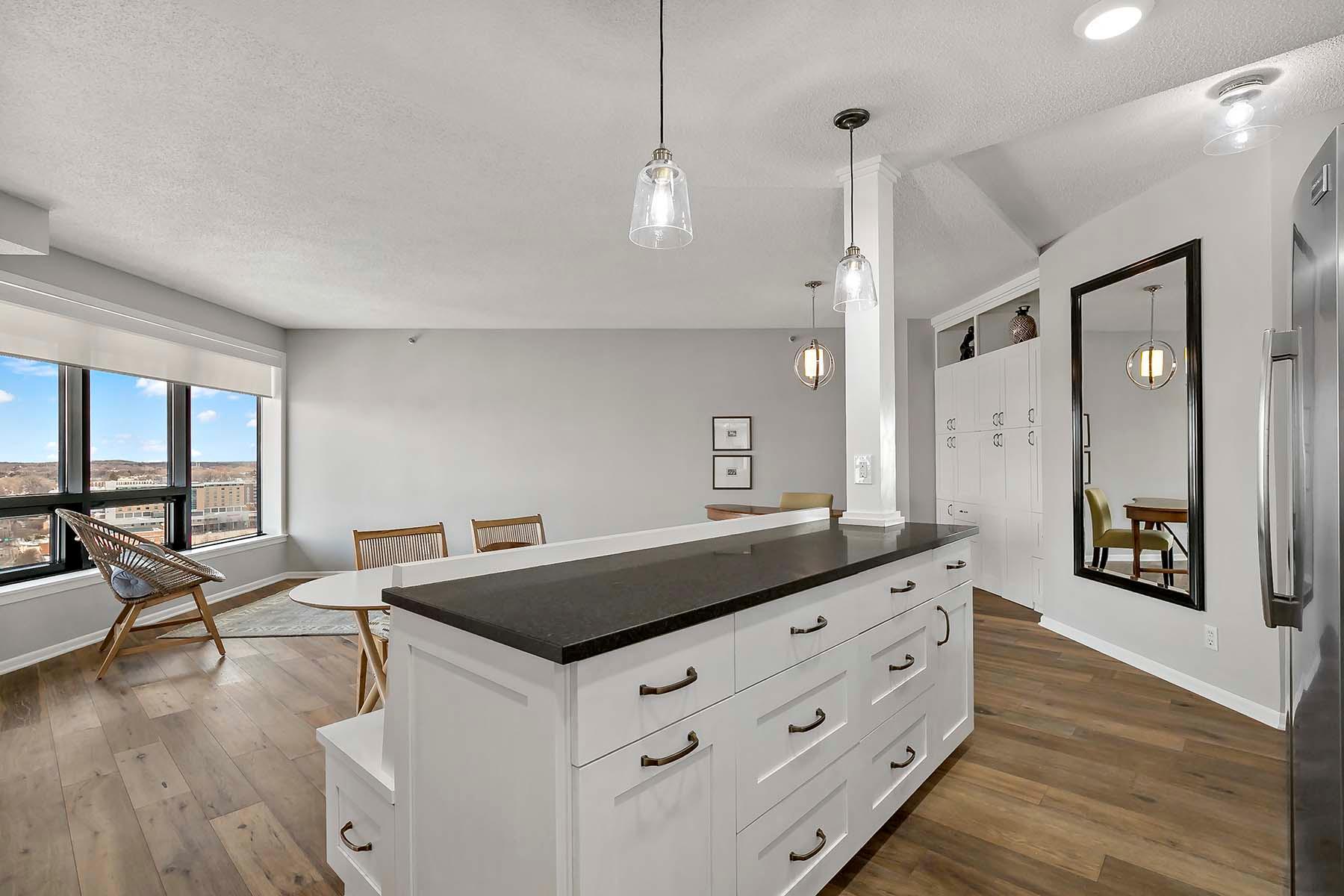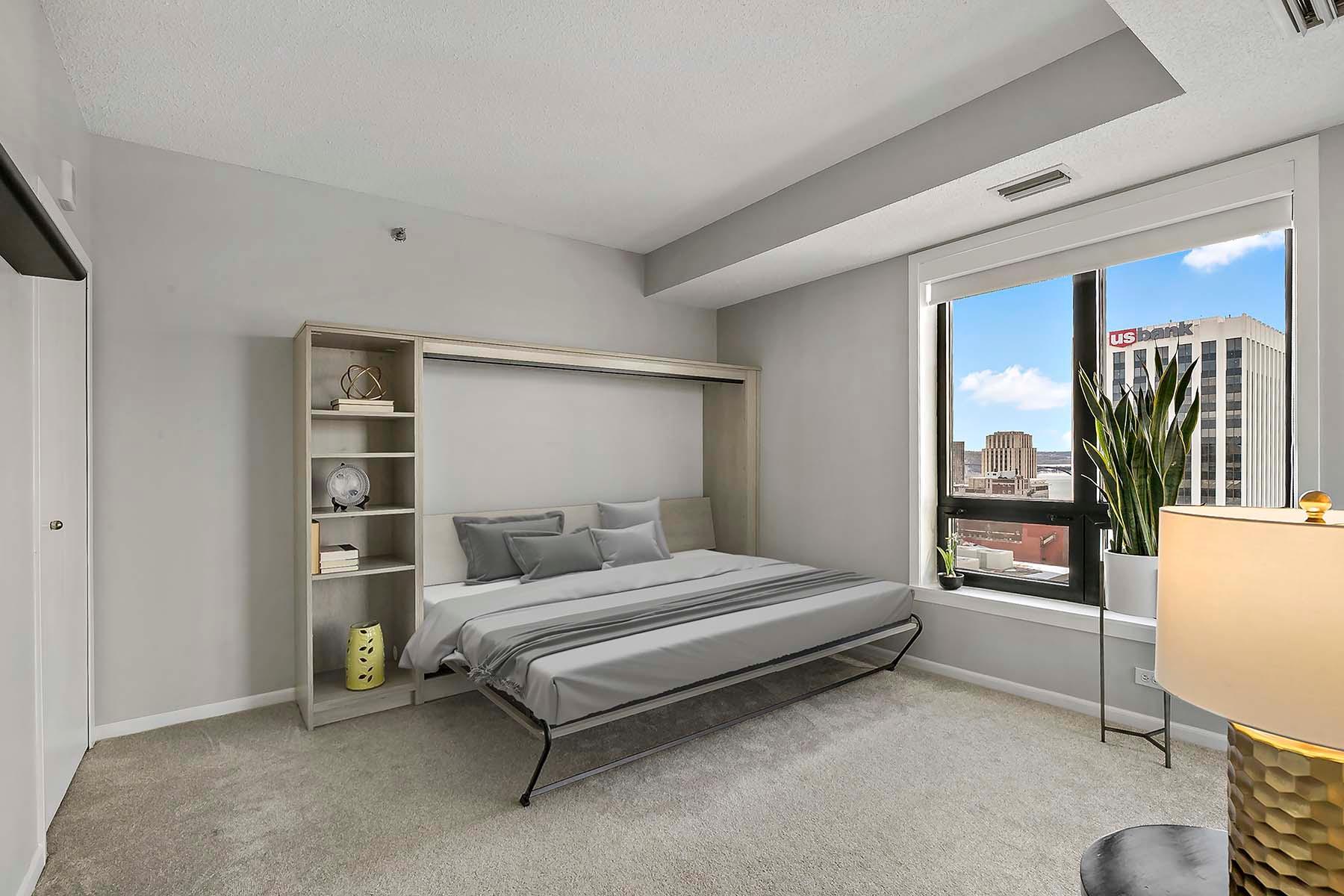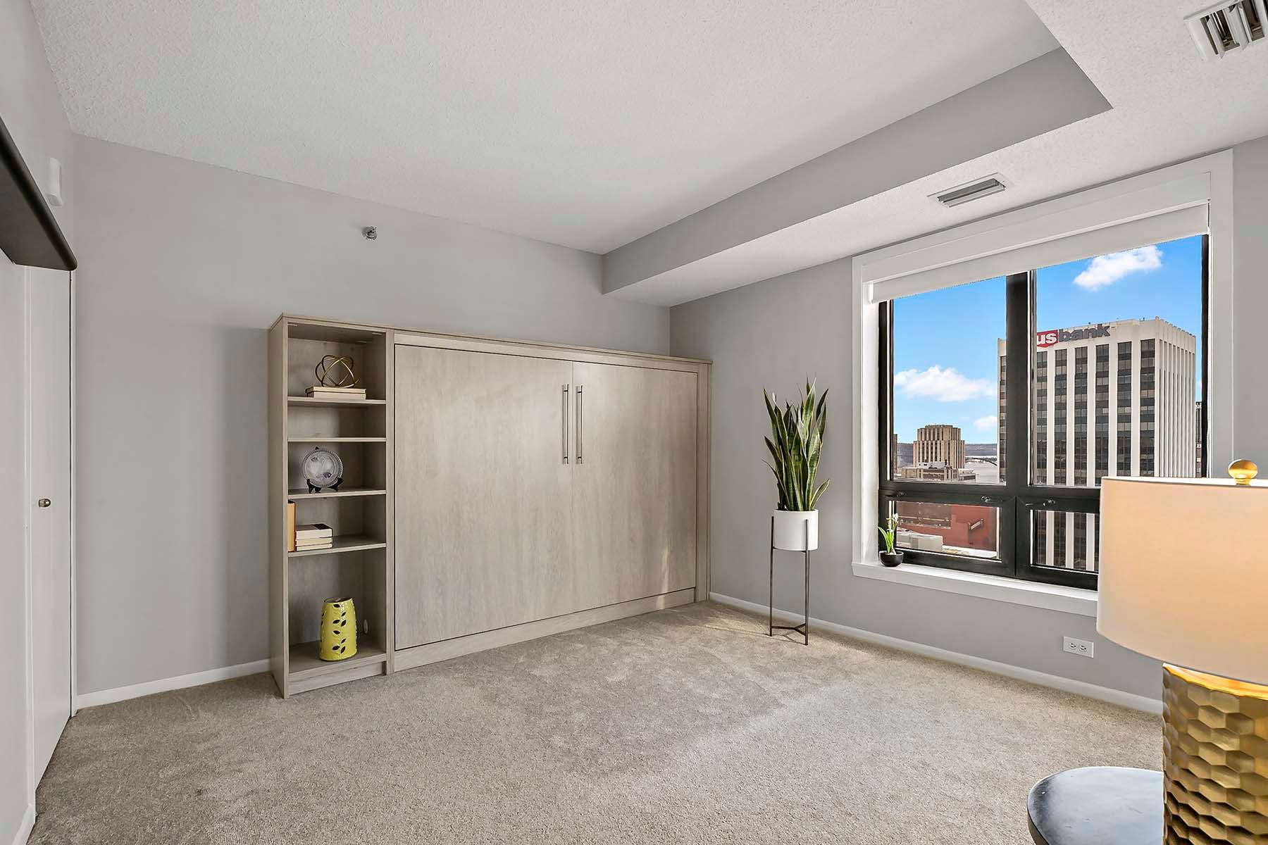 Public Remarks: The Airye in Lowertown. Carefully designed and beautifully renovated. Designer features throughout. Custom kitchen cabinetry, built-in office, and all Container Store closets. Entry features in mahogany. The dining room & banquette can seat at least 8. Balcony overlooking the State Capitol. Airye has approved a major common area renovation of all lobbies, and the sellers will pay the assessment before closing. Owned storage unit, owned garage stall. Dues include heat+AC+internet+ cable+water. Community room. Excellent on-site management. Non-smoking building.The Airye is right ON THE SKYWAY to all downtown, even the Ordway and Wild games. Just 1 to 3 blocks to: Mears Park, Farmer's Market, Union Depot, CHS ballfield events, artist lofts, dozens of Lowertown restaurants. Owners pay for electricity (including for the HVAC fan). Otherwise, costs are taken care of in the association dues. Heat & cooling comes from District Energy, a central downtown source.