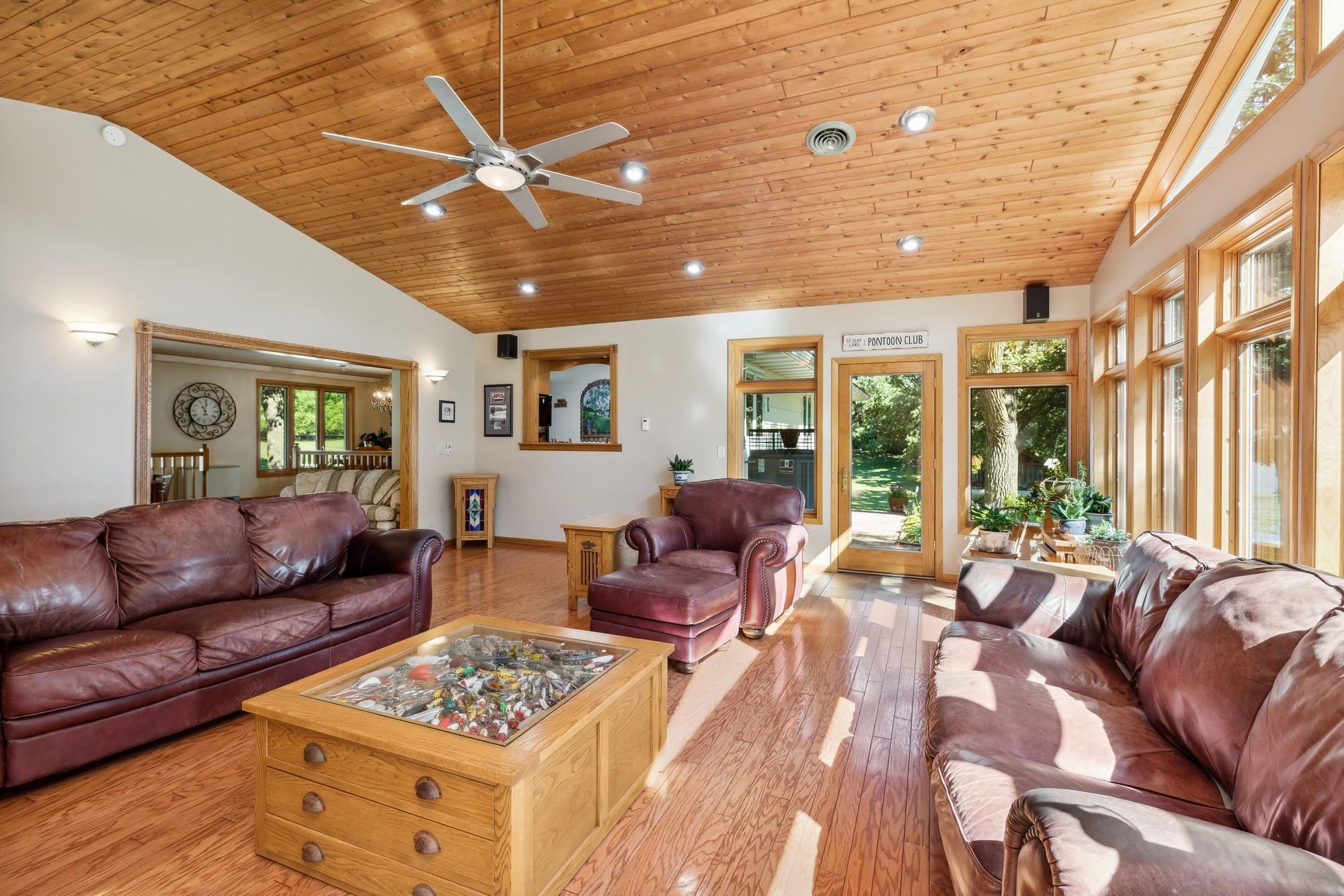 Public Remarks: Dreaming of lake living? Charming rambler with amazing 1500 feet of St Olaf lakeshore – total acreage 4.96 includes adorable lakeside shed, 30x36 heated shop. Warm & inviting home is meticulously maintained and updated. The great room boasts oak flooring, full wall of windows with cathedral vault, in floor heating with white cedar on the ceiling with recessed lighting. Primary suite features a private ¾ bath with ceramic tile and glass block, granite countertops and a walk-in closet. 2 additional bedrooms with a full supporting bath are in the bedroom wing. Both formal dining and living rooms, an eat in kitchen dressed in oak cabinetry with stainless appliances, ceramic tile floors and granite tiled countertops and backsplash, main level laundry and ¼ bath. Lower-level amusement room with 2nd kitchen, ¾ bath, workshop, storage and more – ability to create 2 additional bedrooms with added egress windows. Additional parcel of 5+ acres is available. 17236 237th Avenue – MLS # 6304651.