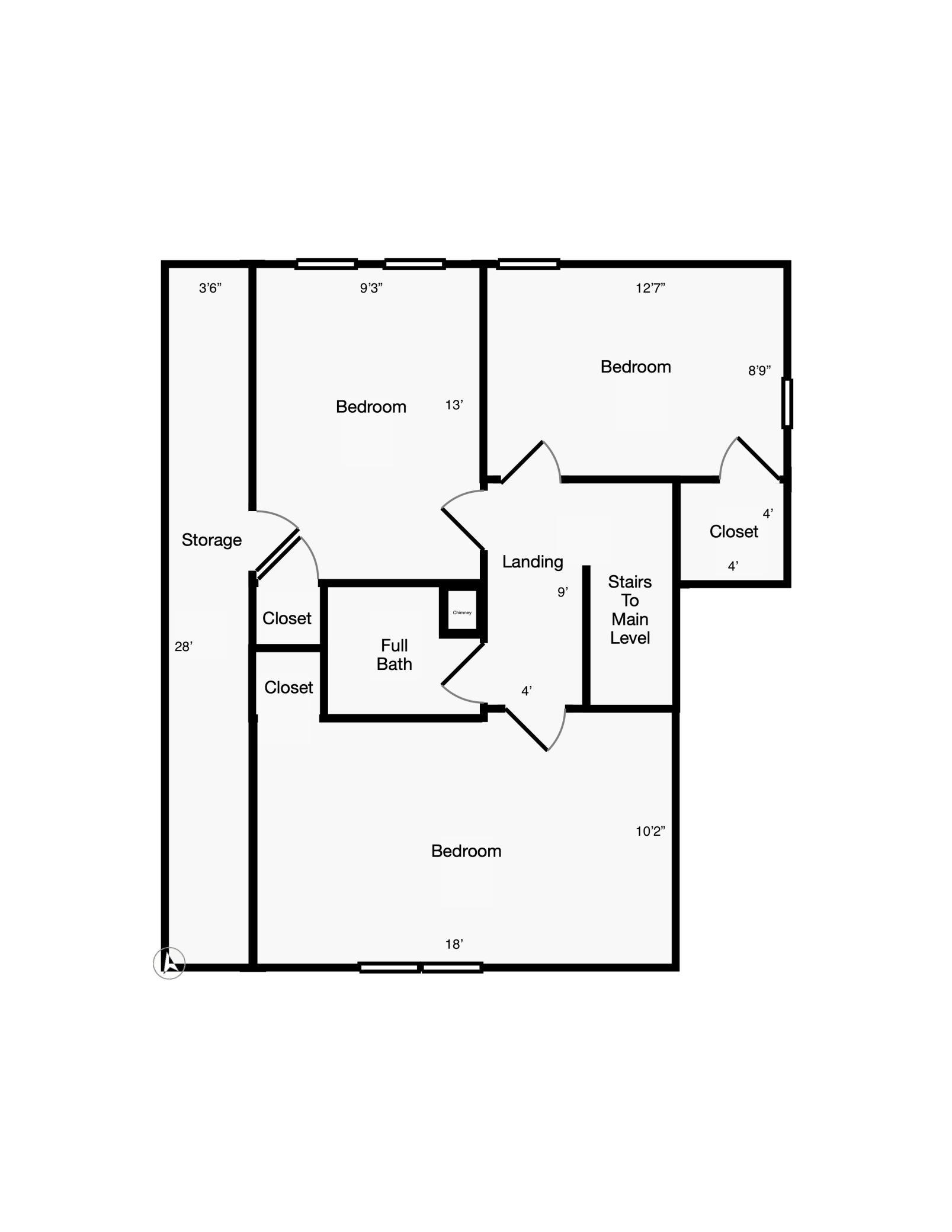 | First (1st) Bedroom | 18 x 10 | Upper |