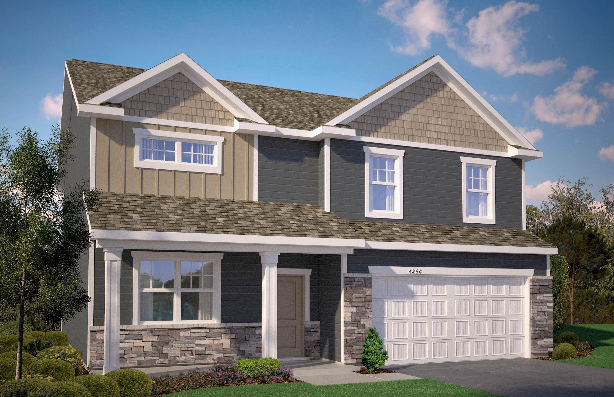The Henley is a spacious five-bedroom home! The main level has an open concept feel from the kitchen and dinette to the family room. There is also a main level bedroom with private bath. Ample space in the mud room with a large walk-in closet for storage! More highlights of the home are the corner walk-in pantry in the kitchen which also includes quartz countertops, stainless appliances, and an island with breakfast bar. Upstairs, homeowners will enjoy the loft for additional comfort and living space, and an upper-level laundry room. The bedroom suite has a private bath with double vanities and walk-in closet.