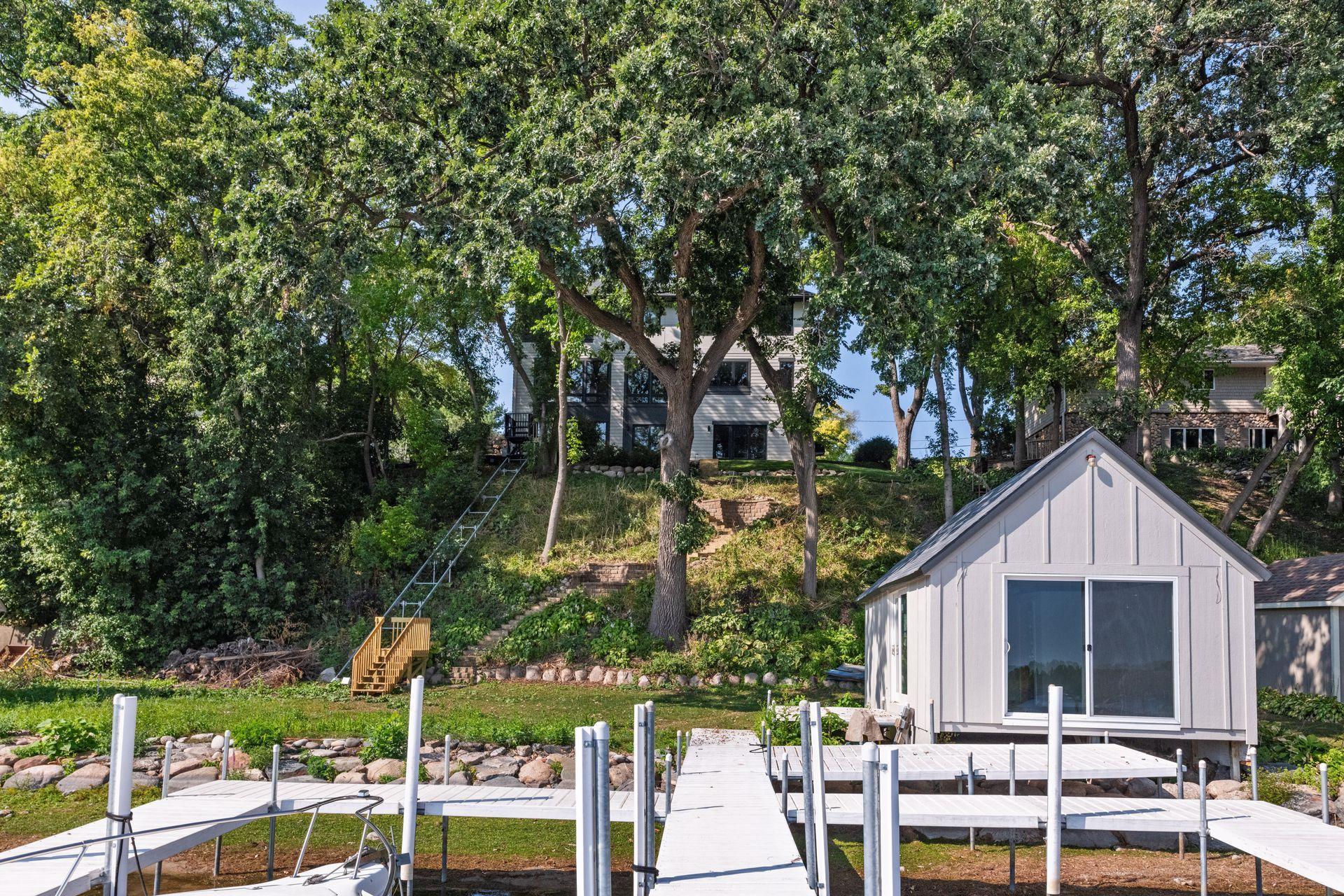 Public Remarks: Opportunity awaits to own gorgeous new construction on sought after St. Albans Bay with 85 feet of sandy lakeshore. Custom features & upgrades galore with superb attention to detail: White oak floors, Gaggenau, Jenn-Aire & Thermador appliances, quartzite, exercise room, wine storage, hidden guest room, main and lower level bar areas, remodeled boathouse (w/ electric), breathtaking views, exquisite primary ensuite - the list is endless. Quality construction, desirable floor plan and unique architecture make this lakeside retreat one of a kind. Newer resin dock w power at shore will stay. Lake Minnetonka Regional Trail is located across the street for a walk or bike ride to downtown Excelsior.
