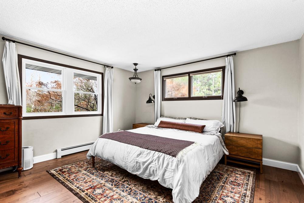 Discover serenity in this Duluth one story home on 5 acres! This property offers an enchanting private country setting, surrounded by mature trees. With updated kitchen and bath, vaulted ceilings, and an open concept design, this home is a modern haven. The large master suite, main level laundry, and oversized 3+ car garage add convenience. Stay warm with a natural wood fireplace and supplemental wood stove. New flooring enhances the main level, while a spacious mudroom, finished walkout lower level, and lower level office offer added space and functionality. New Septic in 2021. Welcome home!
