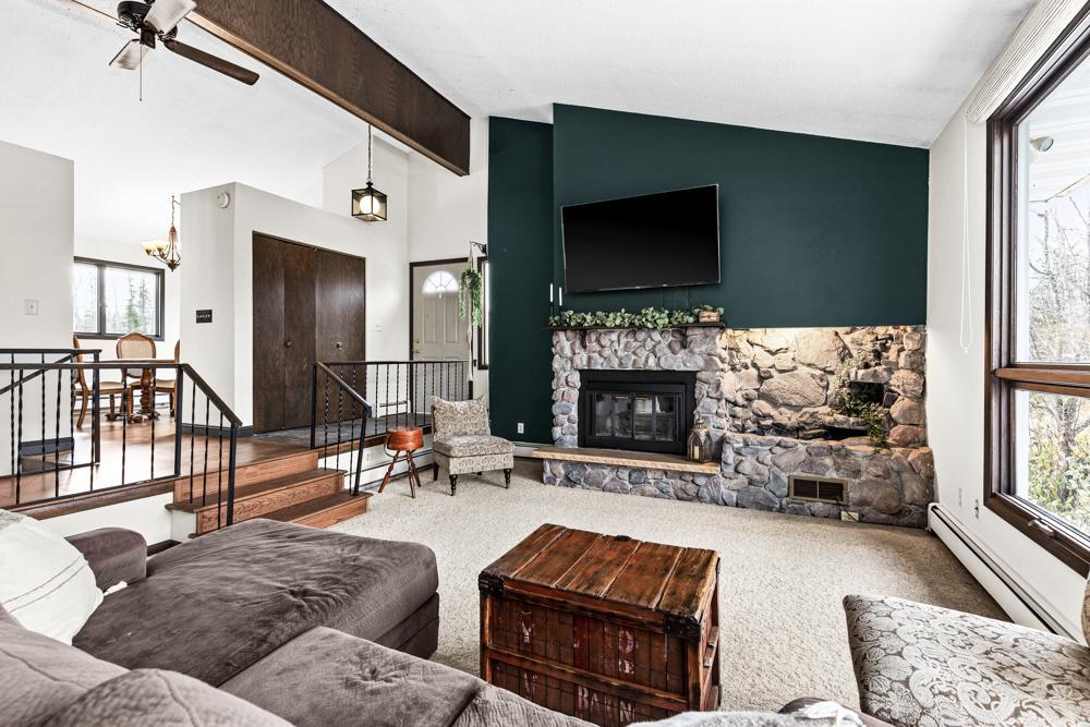 Public Remarks: Discover serenity in this Duluth one story home on 5 acres! This property offers an enchanting private country setting, surrounded by mature trees. With updated kitchen and bath, vaulted ceilings, and an open concept design, this home is a modern haven. The large master suite, main level laundry, and oversized 3+ car garage add convenience. Stay warm with a natural wood fireplace and supplemental wood stove. New flooring enhances the main level, while a spacious mudroom, finished walkout lower level, and lower level office offer added space and functionality. New Septic in 2021. Welcome home!