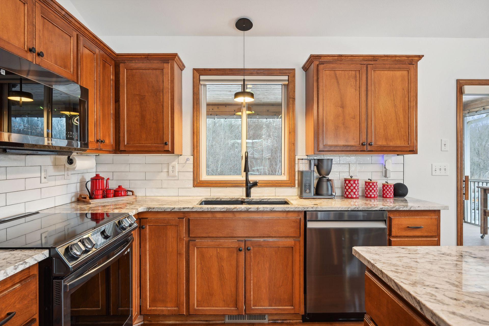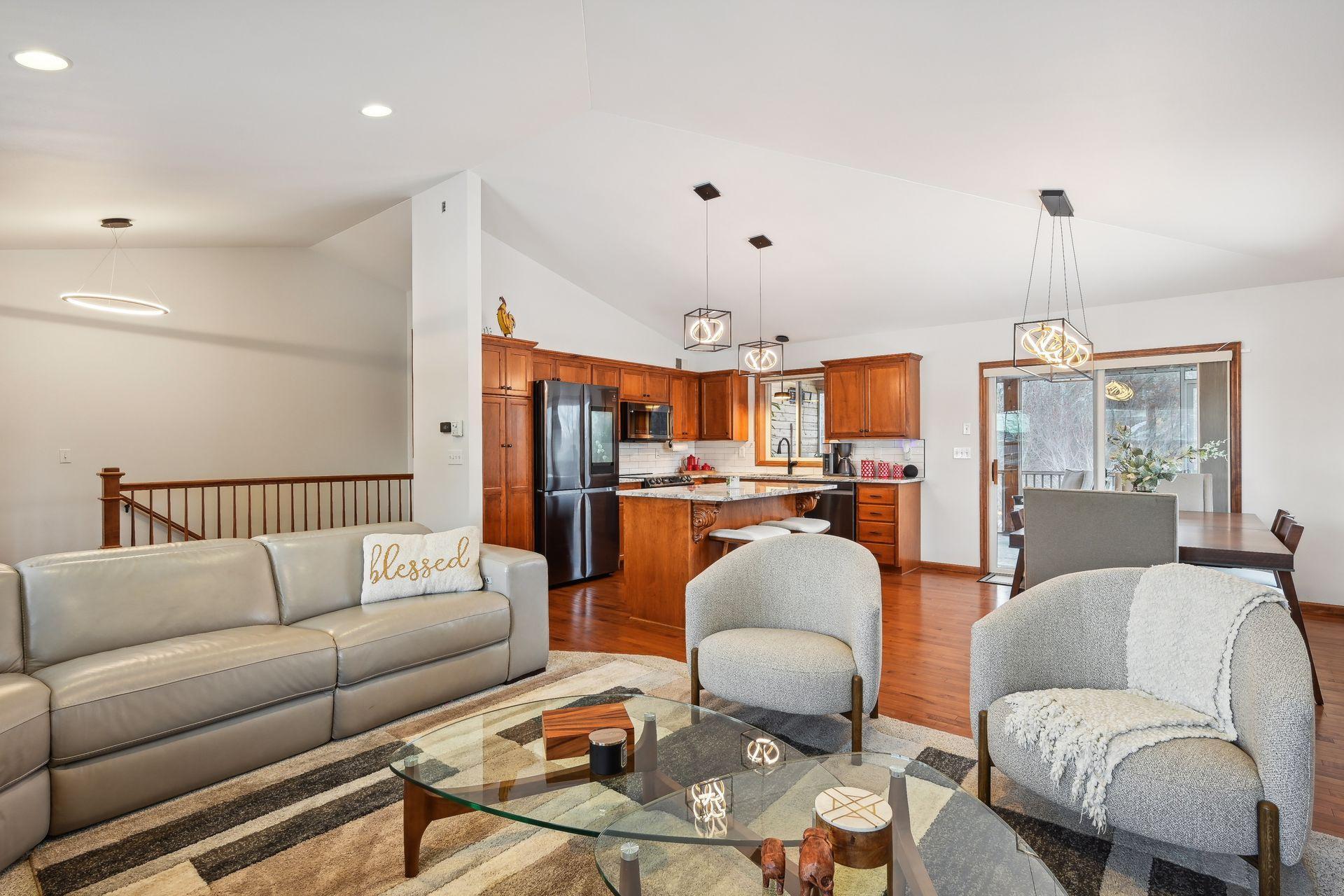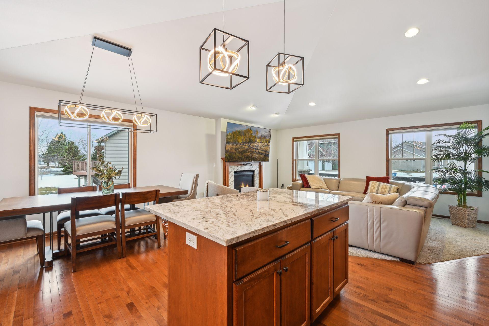 Every inch of this home has been upgraded! The exterior has been accented by Black windows, garage doors, and railing, making the curb appeal pop! With a vaulted ceiling, the open concept main floor feels large and inviting. Even the window treatments are remote controlled! Granite counters, high end SS appliances, and a beautiful tile backsplash make this kitchen a pleasure to prepare meals in. The primary bedroom is equipped with a private bathroom that features a fully tiled walk-in shower, tiled floors, and separate tub for relaxing your troubles away. Stay warm on cold winter nights by curling up to the glow of either of the two gas burning fireplaces. On hot summer nights, watch the sunset with a cool drink in hand as you overlook your fully fenced back yard from the privacy of your wood paneled 3 season porch! Don't miss the dream garage! Fully finished, heated, professionally epoxied, with privacy windows on the garage doors! You may never go inside the house again!