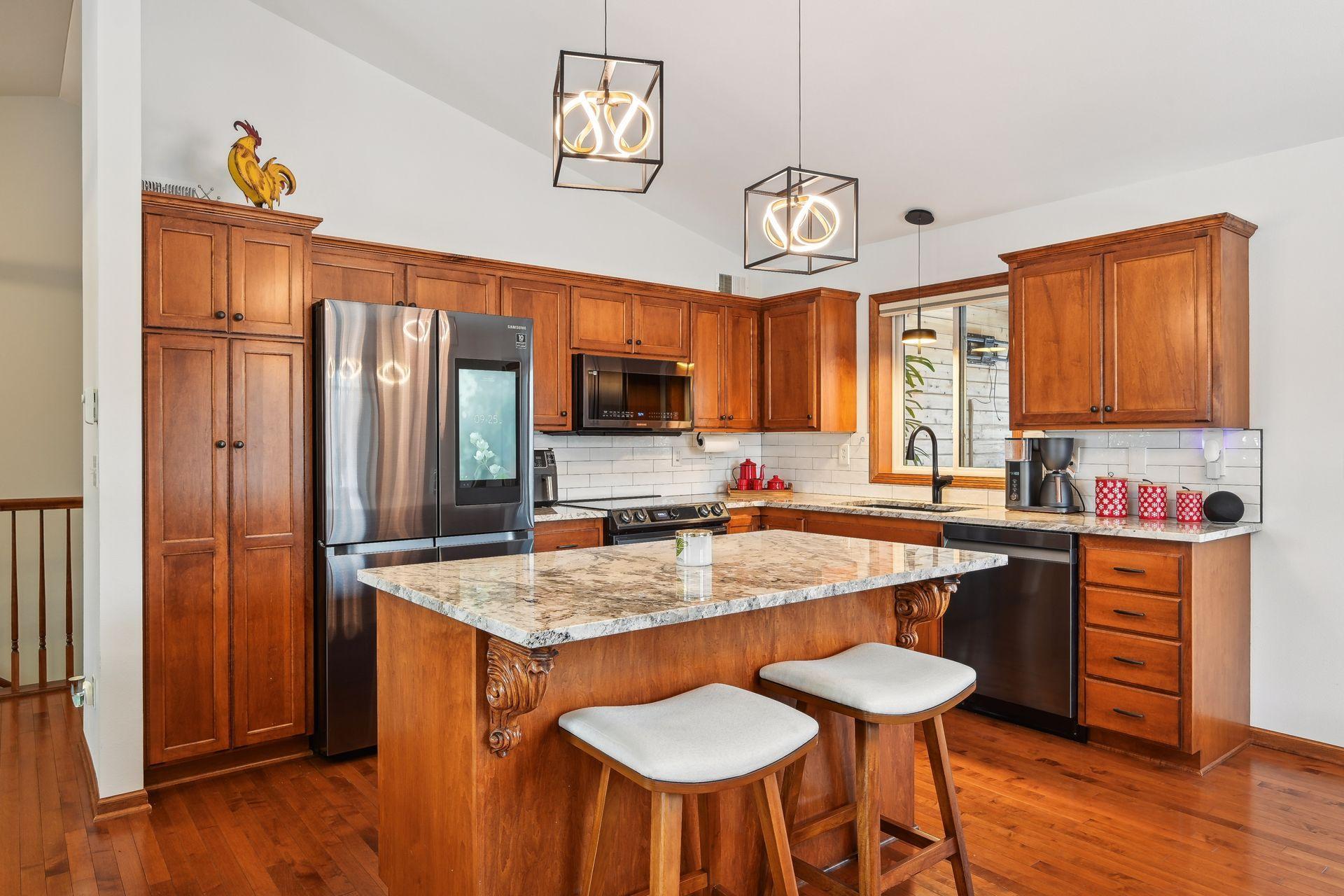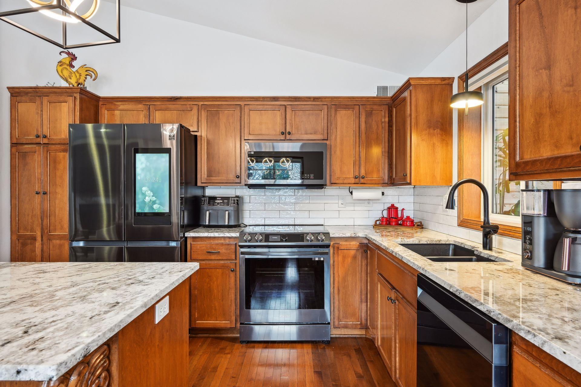 Public Remarks: Every inch of this home has been upgraded! The exterior has been accented by Black windows, garage doors, and railing, making the curb appeal pop! With a vaulted ceiling, the open concept main floor feels large and inviting. Even the window treatments are remote controlled! Granite counters, high end SS appliances, and a beautiful tile backsplash make this kitchen a pleasure to prepare meals in. The primary bedroom is equipped with a private bathroom that features a fully tiled walk-in shower, tiled floors, and separate tub for relaxing your troubles away. Stay warm on cold winter nights by curling up to the glow of either of the two gas burning fireplaces. On hot summer nights, watch the sunset with a cool drink in hand as you overlook your fully fenced back yard from the privacy of your wood paneled 3 season porch! Don't miss the dream garage! Fully finished, heated, professionally epoxied, with privacy windows on the garage doors! You may never go inside the house again!