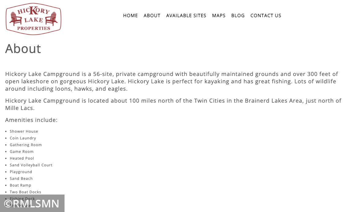 Public Remarks: Opportunity to own a beautiful lot in Hickory Campground close to the lake front with direct owner access to Hickory Lake! This is a lovely, quiet, well-maintained camping oasis, nested into the shoreline of a private, no public access lake. As an approved association owner, you'll enjoy a permanent campsite home with access to dock, beach area, boat launch & boat slips (depending on availability). All you need to bring is your family (pets welcome) and your park model/camper! The park provides free WiFi, picnic tables, grills. This specific lot is approx 35ft x 70ft, (#37) has 30amp electric, septic, water and fire-pit and is situated close to pool, play/game areas and Association buildings (bathrooms, storage, etc). Hickory Lake is centrally located close to Aitkin, Garrison, Brainerd and many other area lakes for dining, shops, healthcare, golf & entertainment! Don't miss out on your chance to own an affordable slice of heaven in the heart of the Northwoods!
