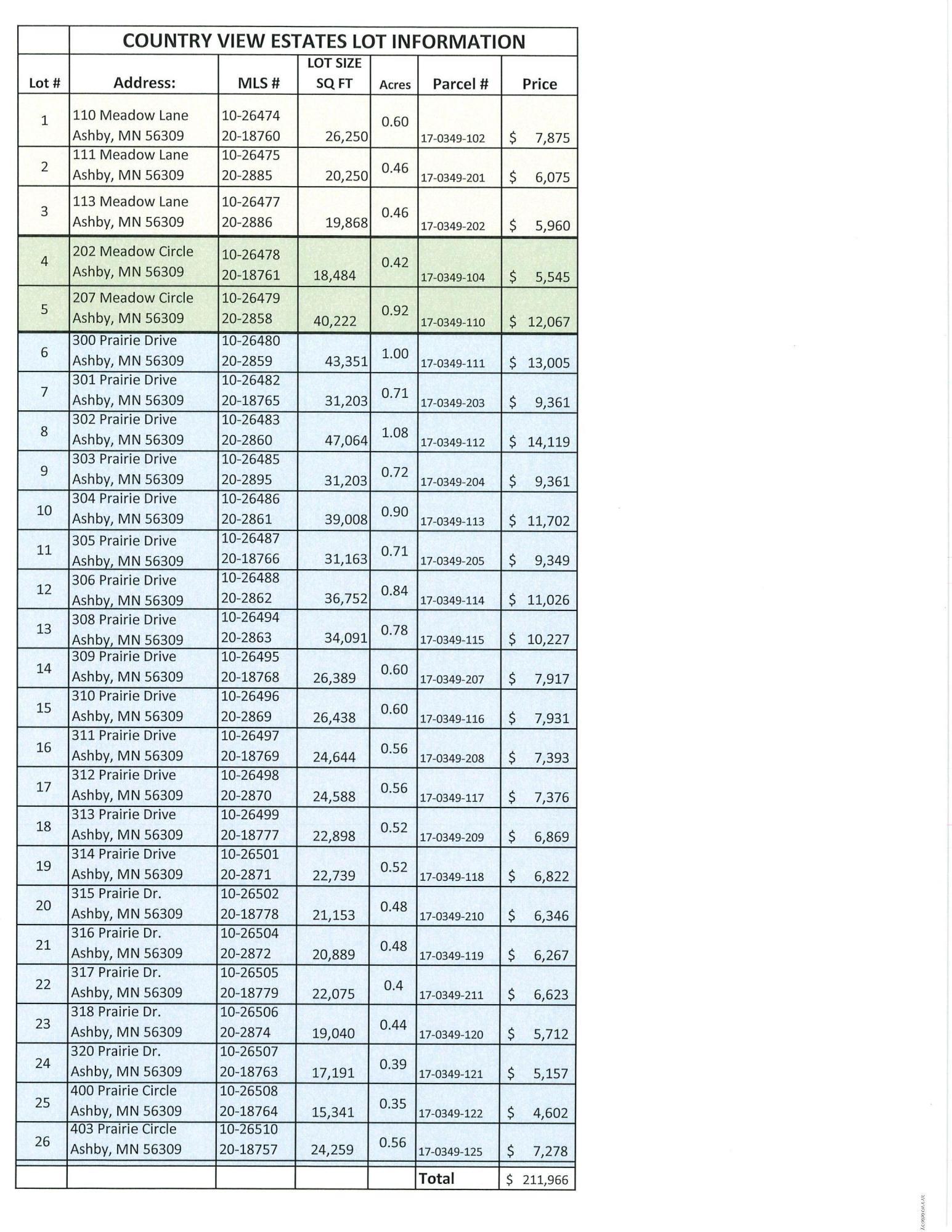 Directions: Ashby, MN in Grant county to Main Street East on 47 North to Main Street East. Or Interstate 94 West to Exit 77 to North on 78 to 330th left to Country View Estates.