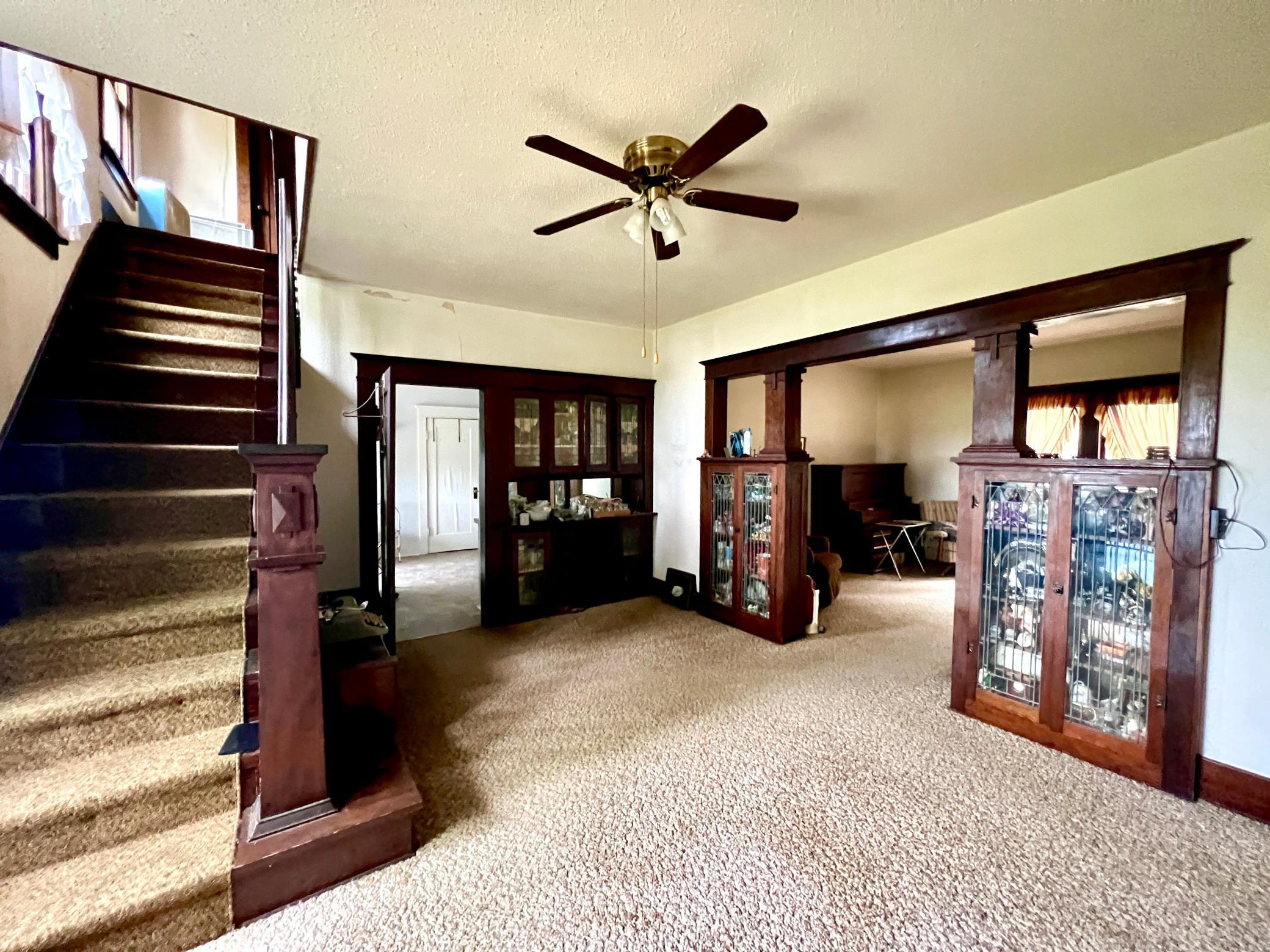 This farm site is in a gorgeously serene location. Cattails, wildflowers and songbirds greet you as you wind down the drive toward the farm site. Once you arrive, you'll find the home positioned against a backdrop of a deeply wooded shelter belt of trees, a quiet home to deer, pheasants and turkeys. The home has gorgeous woodwork throughout, the rooms are very spacious and the home has a great layout. Though it is in need of renovations, the beauty is clearly apparent and should excite anyone with an imagination and an admiration for historic craftsmanship. Let's have a look, we are excited to see your vision come to life!