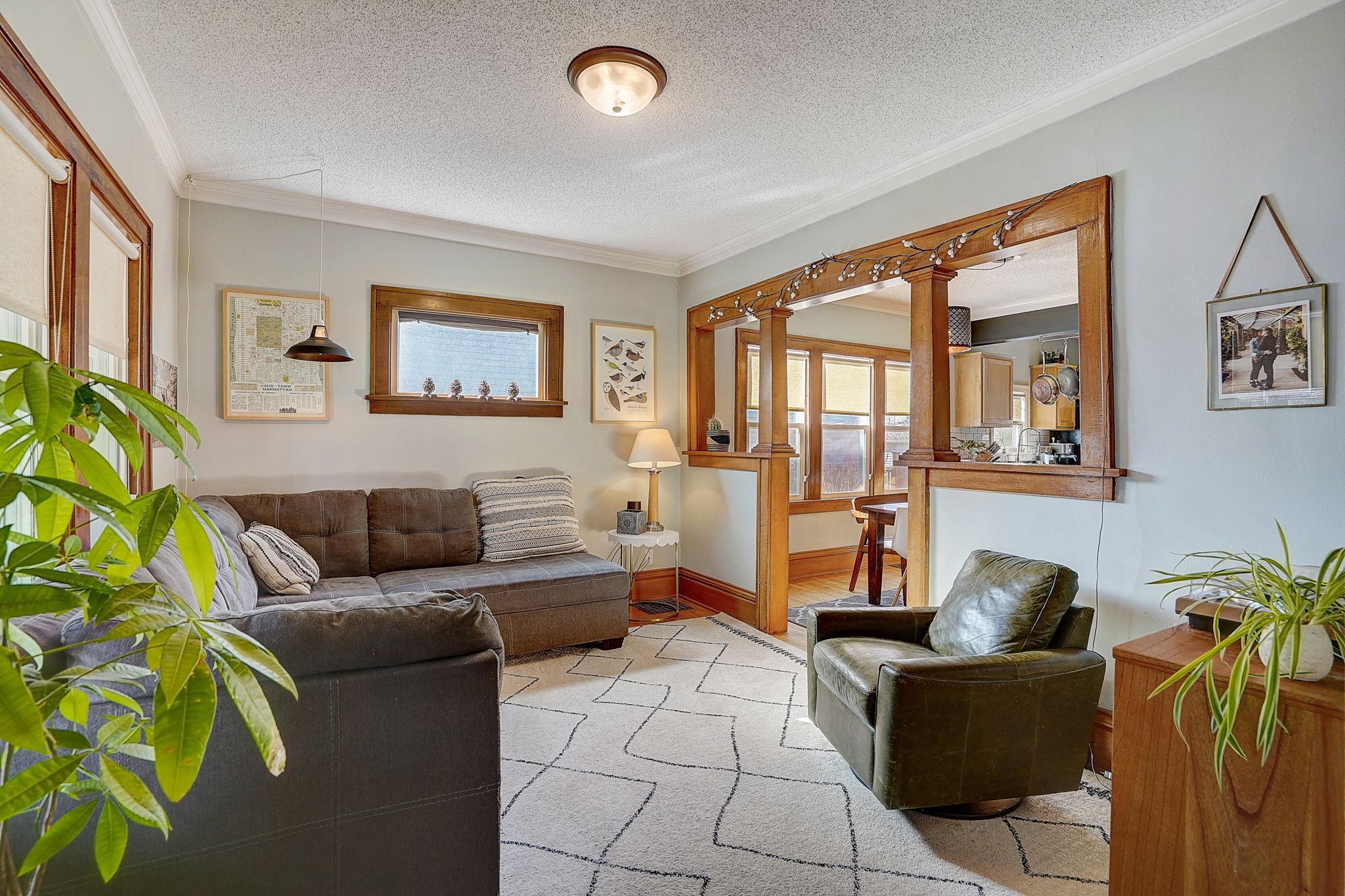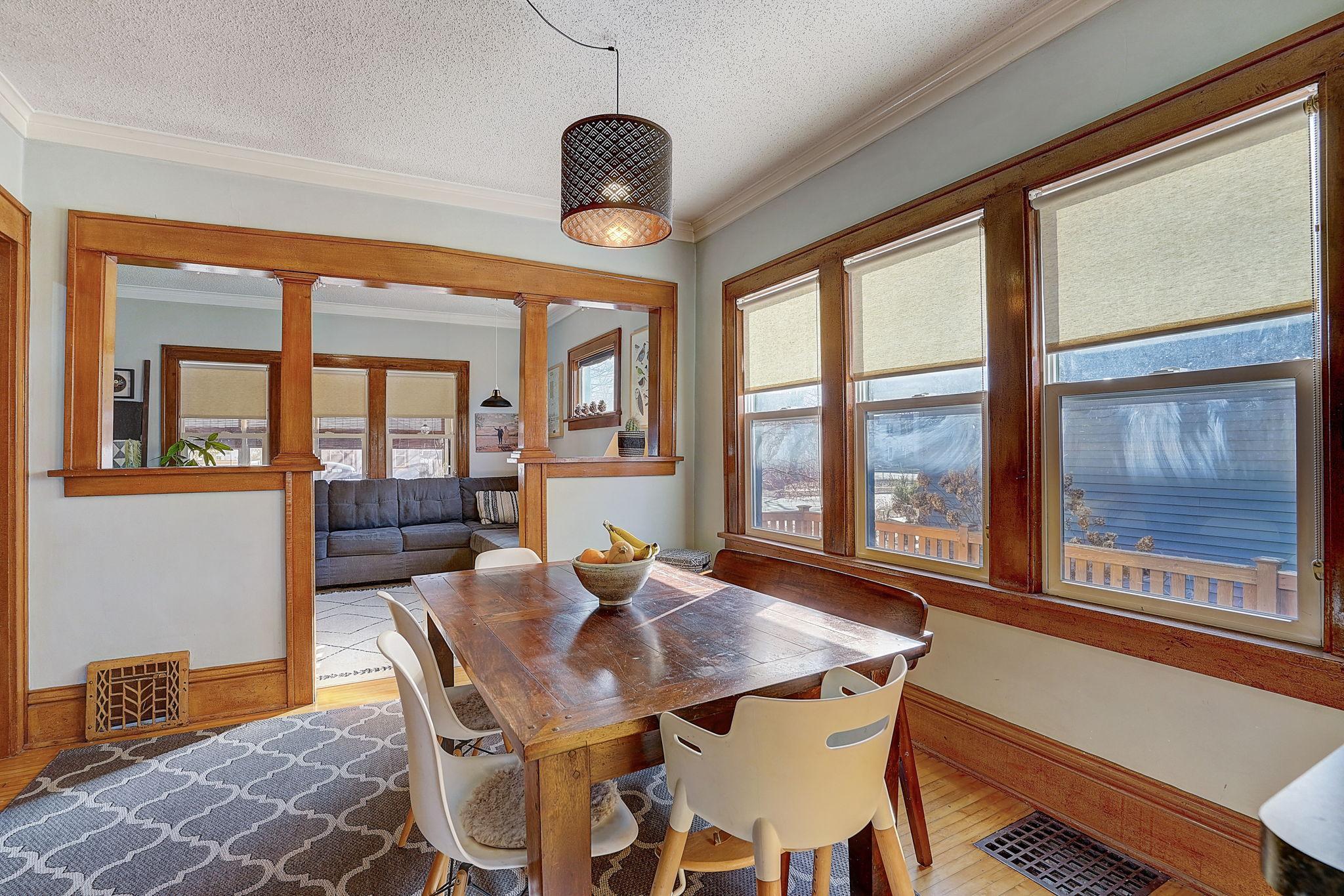 Standish Stunner! Just a hop, skip and jump from Sibley Park, Duck Duck Coffee and D’s Bahn Mi. This 1918 craftsman bungalow features beautiful original hardwood floors and woodwork. The entry features a large 3 season front porch - perfect for enjoying morning coffee. The main level living room is ideally situated to the bright, south facing dining room with a built-in buffet and easy access to the updated open concept kitchen. There are two spacious bedrooms and an updated full bathroom. The upper level sports the third bedroom and extra office space. The lower level, complete with LG washer and dryer, is ready for your ideas or perfect for extra storage space. Cedar privacy fence fully encloses the spacious landscaped backyard, and the patio is ready for you to enjoy the summer months. Ideally located with easy access to 35W or HWY 55 and the light rail. Neighborhood grocery across the street.