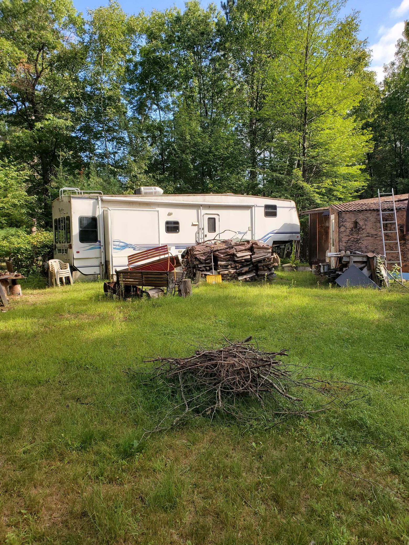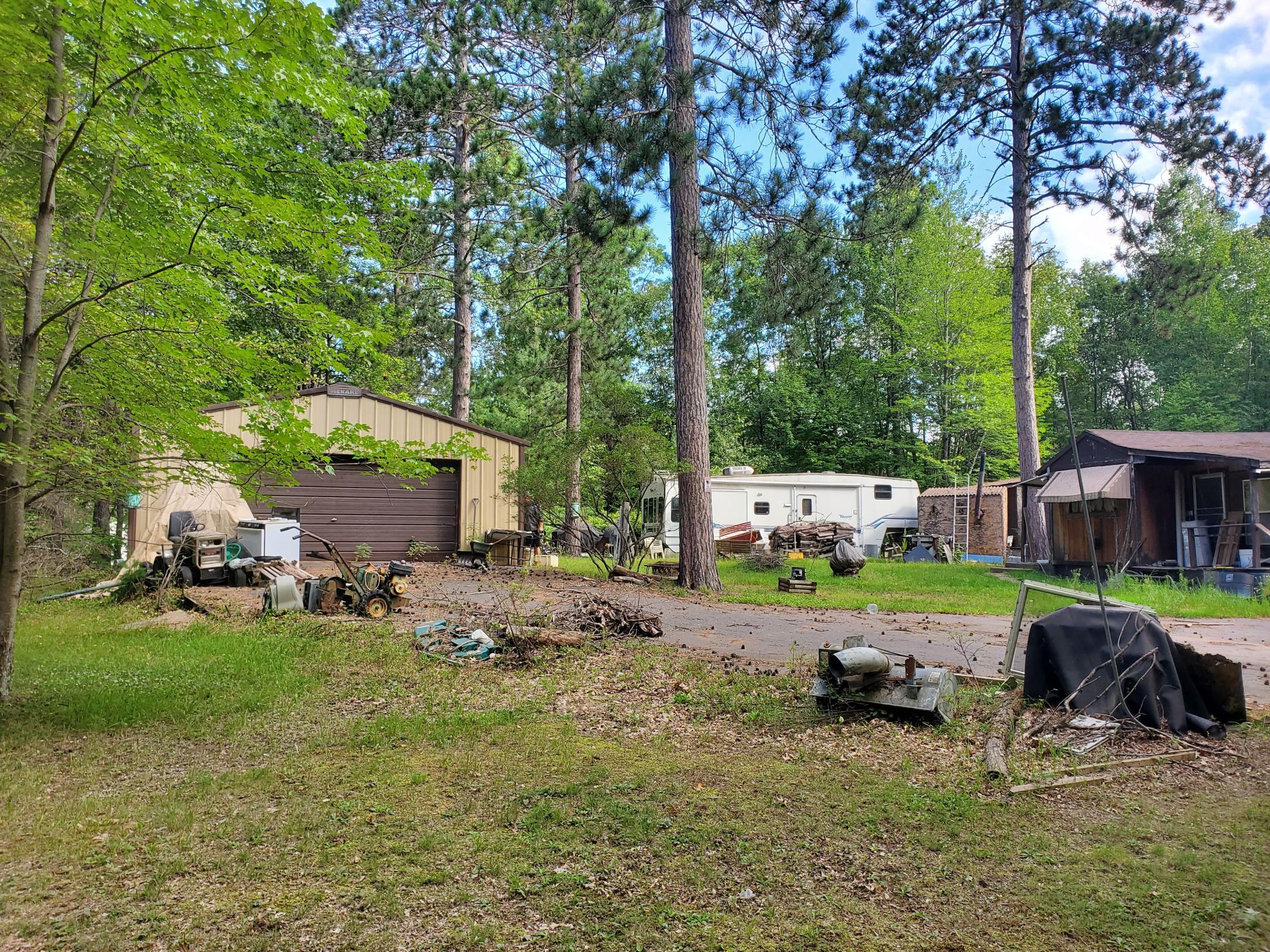 Here we have 3 separate 100x200 buildable lots with an old trailer and garage. The trailer is not ready to move in but the garage can be saved. There is a lot of debris that needs to be cleaned up. These lots are nice with mature trees and a nice setting just 100 feet from a paved road. Great spot for a new home or 3 separate cabins/camping sites. Lake Access available for a $40 fee. Access to a swimming beach on Sturgeon Lake and boat launch to Rush Lake. A lot of potential. Bring your ideas.