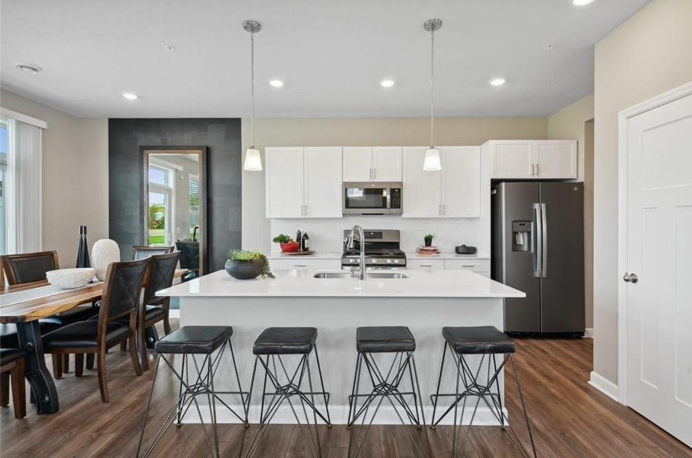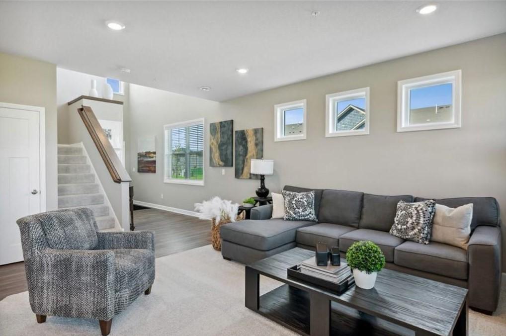 Public Remarks: Ask how you may qualify for a closing cost incentive with use of our preferred lender/title. This End unit ready for a Sept. move in. Spacious & light-filled, two-level row-home style units with large windows front & back-including a 2 story vaulted foyer/housing a large window. Tons of natural light! Open main level floorplan with 9-ft. high ceilings, electric fireplace & ability to walk out on main level to a patio w/privacy partitioning. Beautiful kitchen with white cabinetry, quartz countertops, slate-finish appliances, gas stove, center island, backsplash, pantry & more. Upper level features 3 bedrooms, 2 bathrooms & laundry room. Spacious owner's suite with large walk-in closet and private bath & double-sink vanity. Built to be move-in-ready complete with window blinds. Plus Lennar's "Connected Home" smart features Ring camera/alarm and Schlage encode smart deadbolt to name a few. New Construction/Manufacturer Warranties. Photos are of similar model as home is under construction.