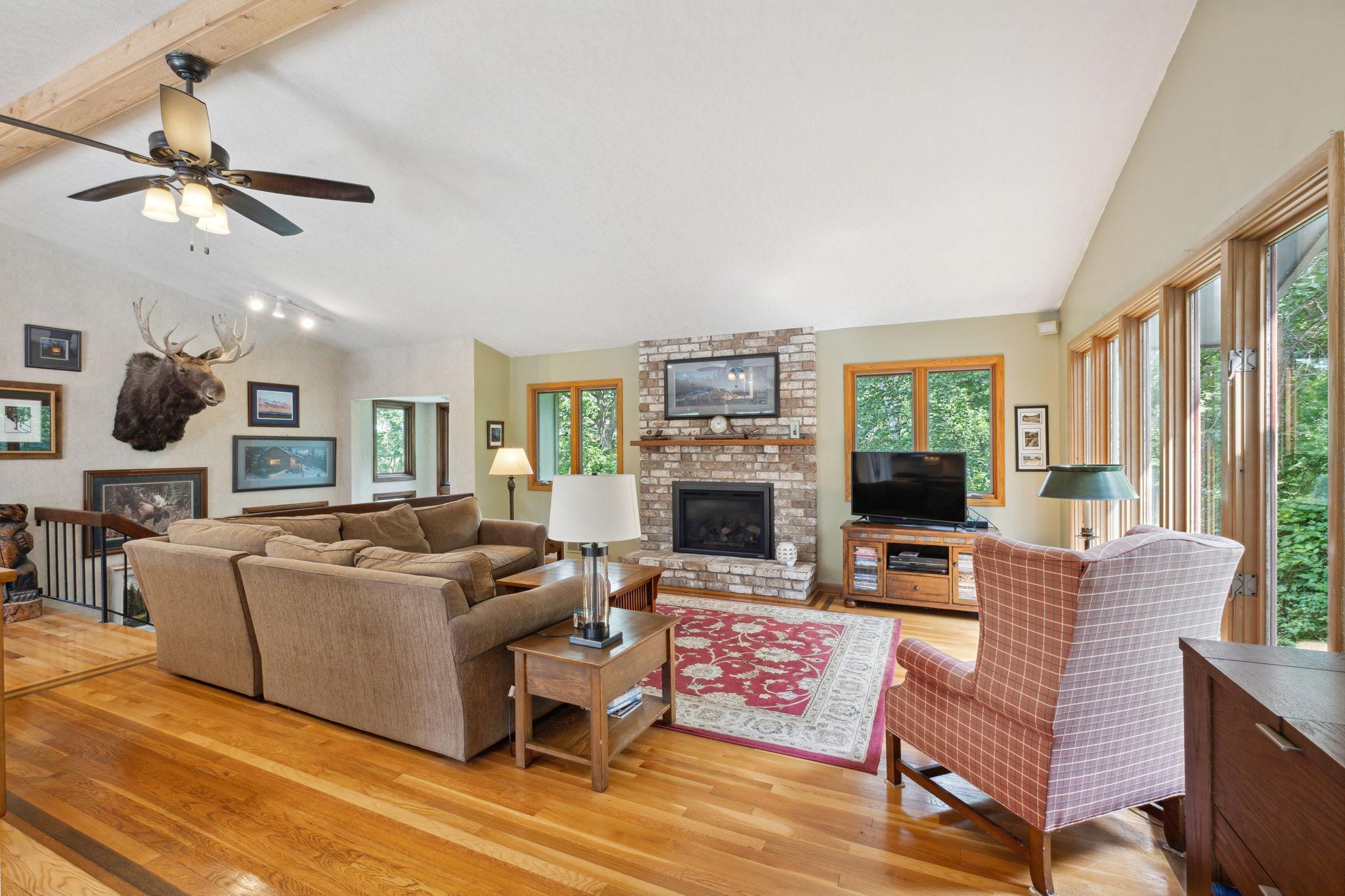 Public Remarks: North Oaks living at its finest! 1.68 AcrenClassic walkout rambler. Open floor plan, updated kitchen, beautiful refinished wood floors, abundant bright natural light, 2 cozy FP to curl up. Wooded lot w/panoramic water views on N and S that make for Currier and Ives skating in winter. Enjoy walkability to Pleasant Lake as well as accessibility to great trail system across the street & amenities that North Oaks has to offer. 4+ GR spaces w/ 2 car garage attached and 2 car GR detached. Shop spaces in home & GR. Feels turn-key w/its fresh paint, major updates include but are not limited to: Roof 2017, subsurface sewage 2018, master BR w/soaker tub & steam shower, Floor warmer, central ac 2021, deck upgrades 2021, many new windows, furnace 2020, lower level rooms finished, & many more upgrades. 3 season porch is a favorite! Country club dining, golf, hiking, biking, X-country skiing, pickle ball, tennis, nature, wonderful community near Kowalskis, CUB & Lunds, Down WBL, Private