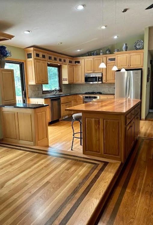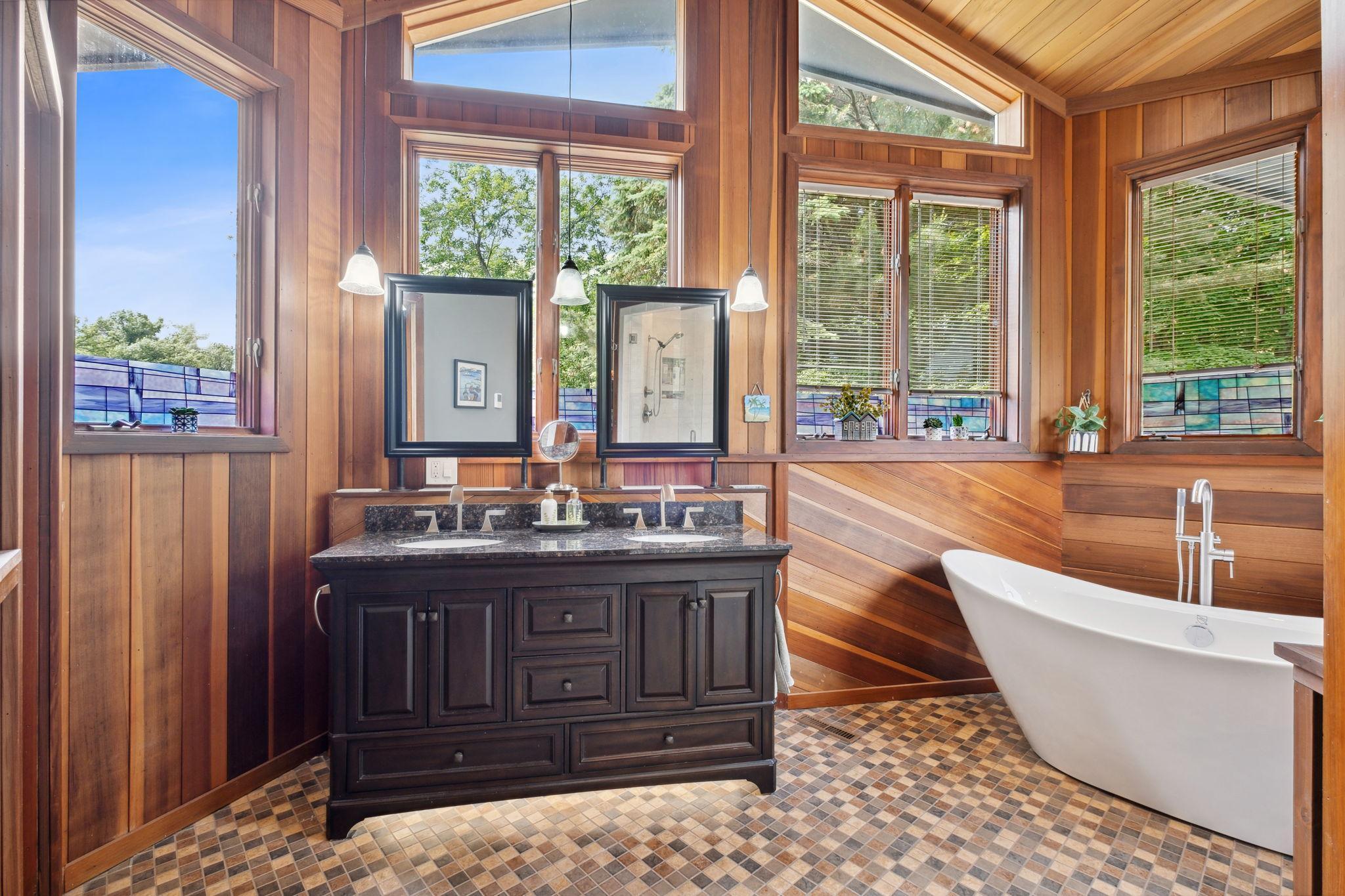 Amenities Unit: Ceiling Fan(s); Hardwood Floors; In-Ground Sprinkler; Kitchen Center Island; Kitchen Window; Main Floor Primary Bedroom; Natural Woodwork; Panoramic View; Patio; Porch; Primary Bedroom Walk-In Closet; Skylight; Tile Floors; Vaulted Ceiling(s); Walk-In Closet; Washer/Dryer Hookup