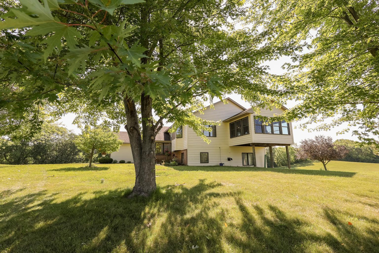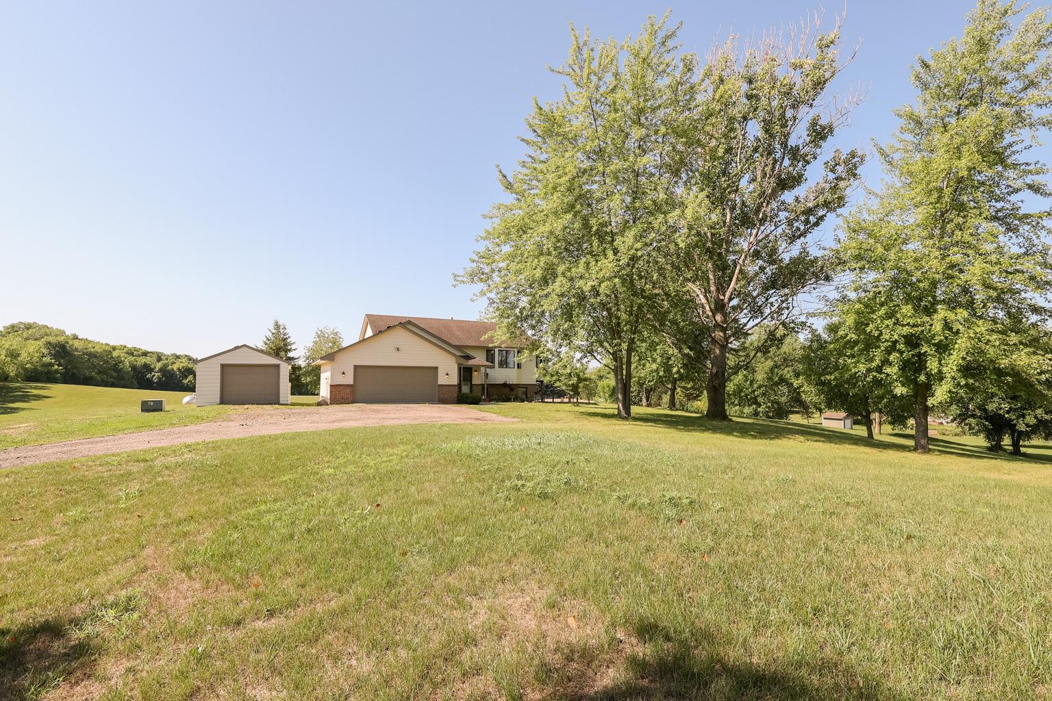 Nearly 11 rolling acres of currently mowed lawn. Great location only 35 minutes from downtown MPLS and easy access to the entire metro area. Great hobby farm potential with enough land for possible qualification of the green acres tax credit. Don't pay to board your horses, pasture them at home. Build the outbuildings of your dreams, with plenty of available power, whether it’s for an indoor horse arena, workshop, and storage building. Treed perimeter gives you privacy with limited view of your neighbors. The home is built high on a hill and features 3 bay windows to enjoy the gorgeous views, 4 spacious bedrooms, and an office. The kitchen, living, and dining areas are all open to each other. Enjoy the extra space in the 3-season porch located just off the dining room. Create your own wrap-around deck to host gatherings and enjoy nature. As you enter the home, you walk into an airlock entrance to shield you and your guests from the elements.
