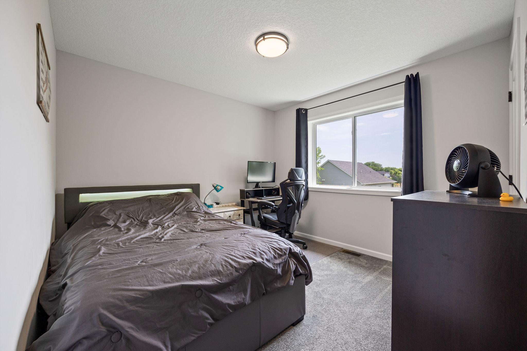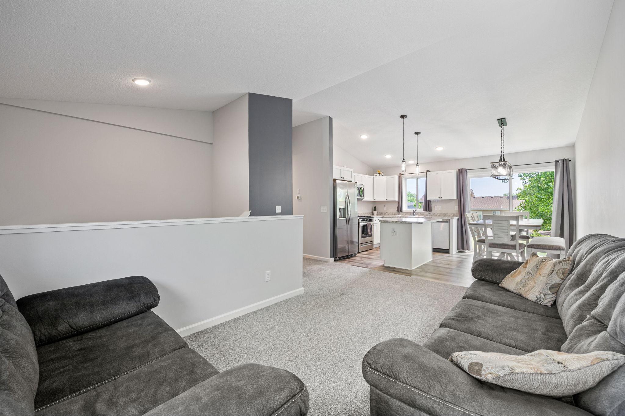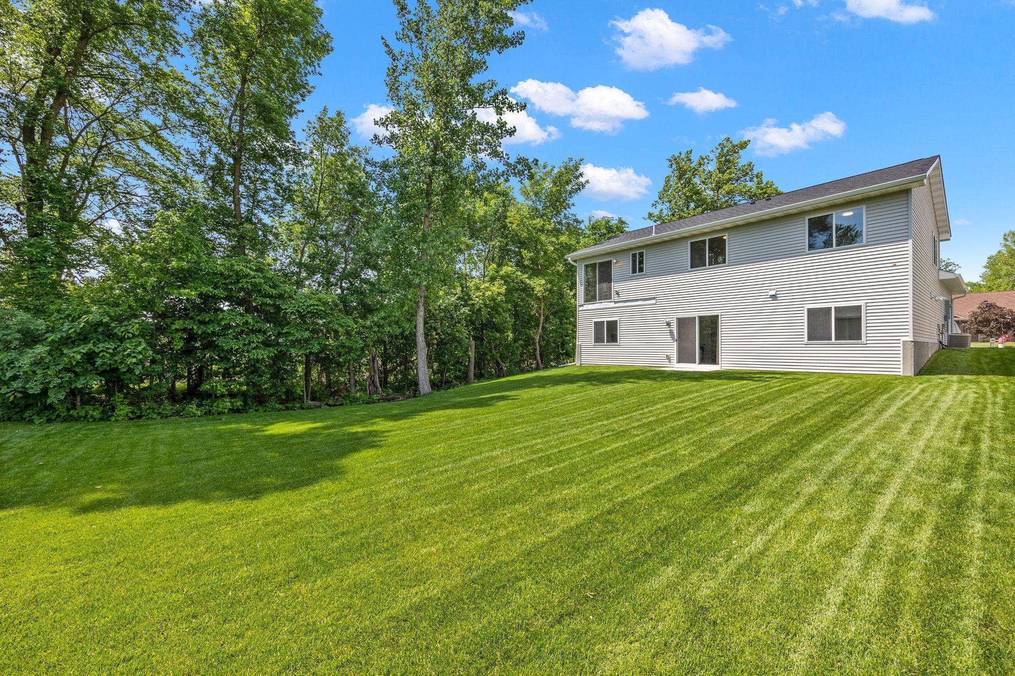 Better than new construction! Completed in 2022, this practically new construction home is ready for new owners - recent updates include, fully sodded yard, irrigation system, security system, window coverings, decorative front porch column, water softener & more! Just move in & enjoy this wonderful split-entry floorplan with 3 bedrooms up & private primary bathroom, fully finished, walkout basement with HUGE family room, study space, 4th bedroom, large laundry/storage/utility room all with easy access to spacious backyard through sliding glass door. This home sits on a quiet, dead end road just steps away from neighborhood park and beautiful Carrigan Lake complete with walking/biking paths.