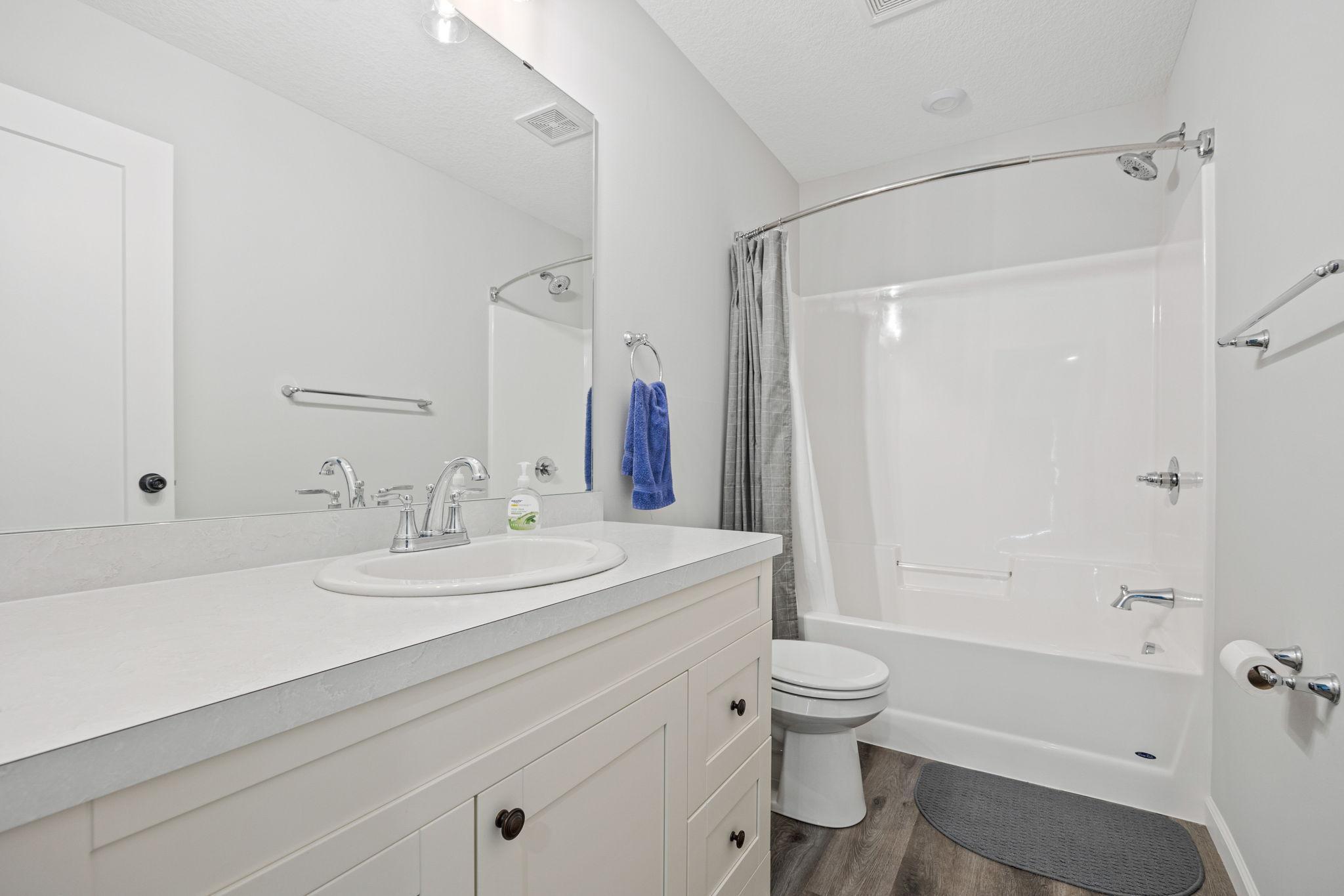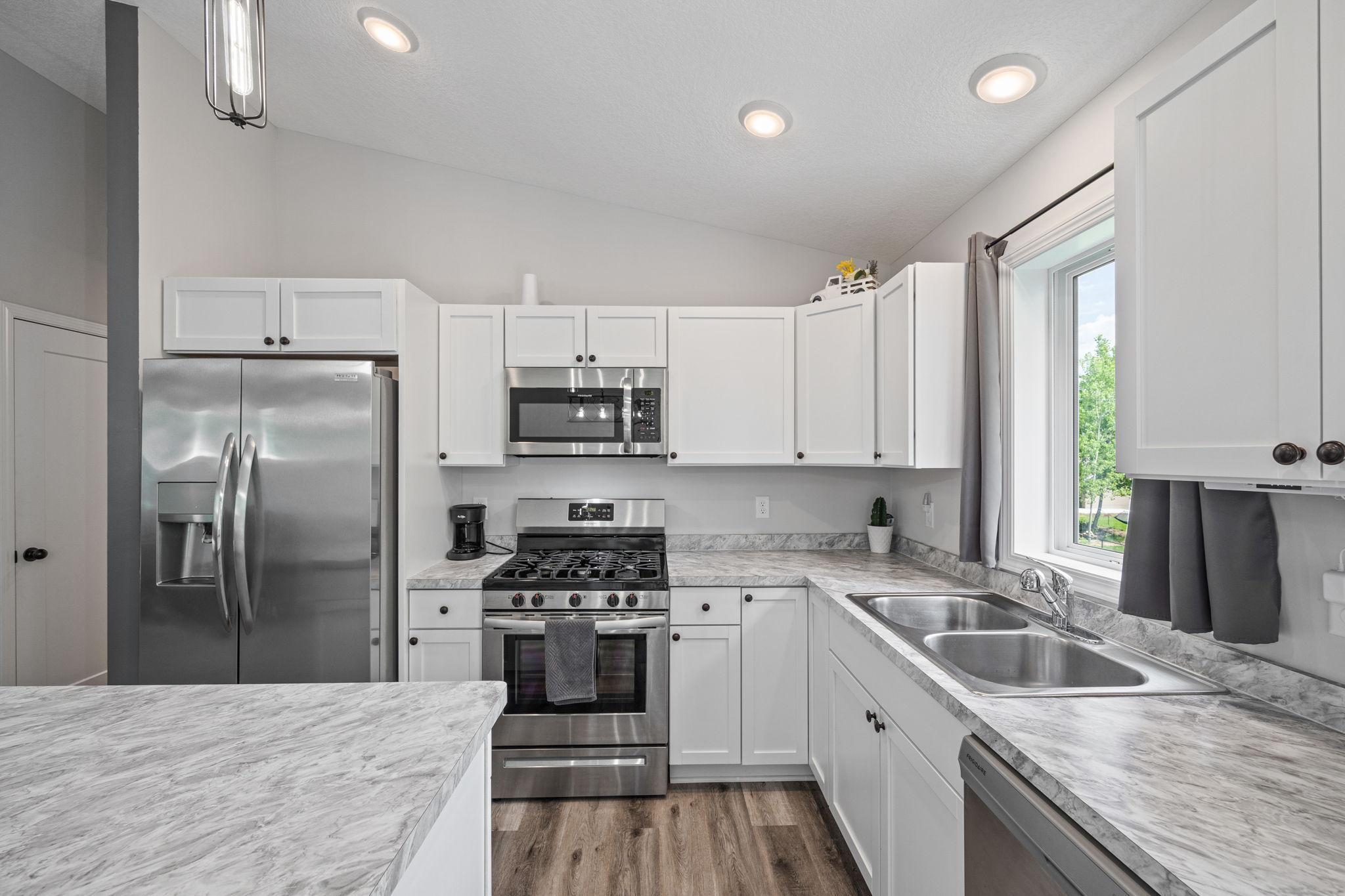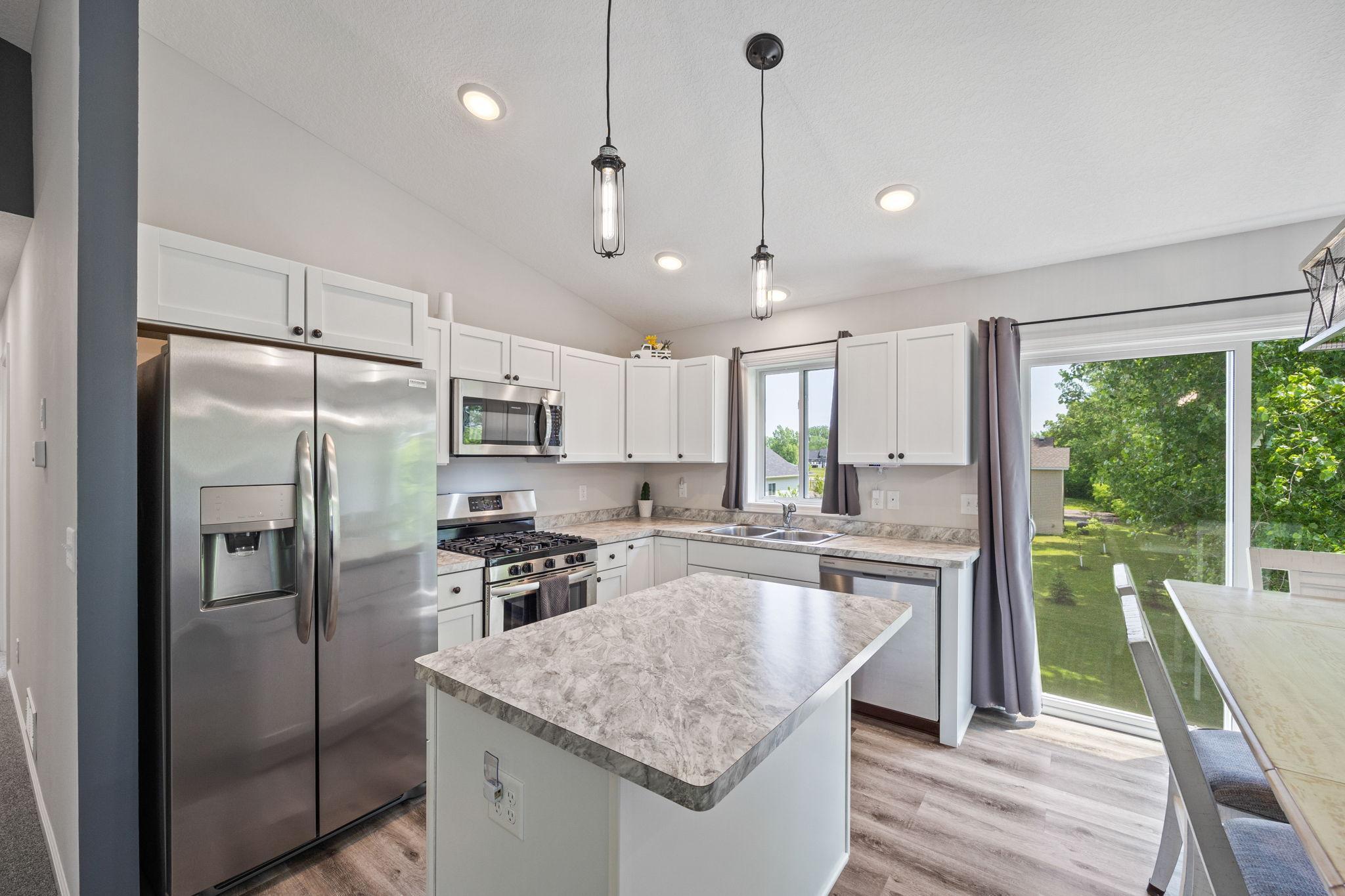 Better than new construction! Completed in 2022, this practically new construction home is ready for new owners - recent updates include, fully sodded yard, irrigation system, security system, window coverings, decorative front porch column, water softener & more! Just move in & enjoy this wonderful split-entry floorplan with 3 bedrooms up & private primary bathroom, fully finished, walkout basement with HUGE family room, study space, 4th bedroom, large laundry/storage/utility room all with easy access to spacious backyard through sliding glass door. This home sits on a quiet, dead end road just steps away from neighborhood park and beautiful Carrigan Lake complete with walking/biking paths.