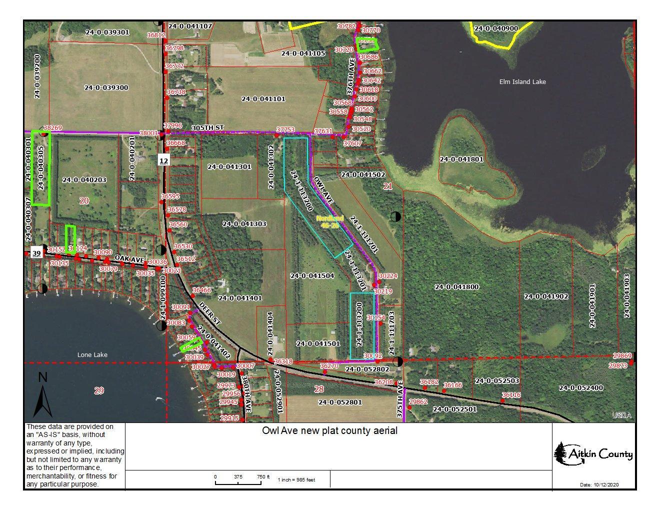 Directions: From Aitkin, S on St Hwy 47 to R on Deer St (CR12) to L on Owl Ave to prop on L