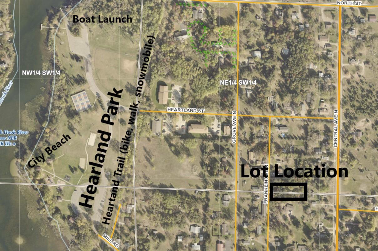 Directions: From Hwys. 71/34 in Park Rapids. East on MN 34 0.5 miles. Left on Central Ave. Left on Bridge Street. Right on Franklin Ave N. Lot is located between 310 and 406 Franklin Ave N.