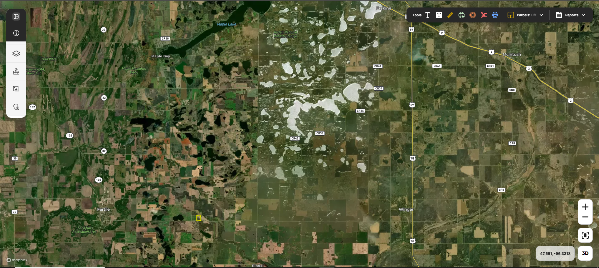 26.82 acres located 4 miles east of Fertile on a paved county road. Property includes approximately 20 acres of tillable land with an 87 CPI soil rating and roughly 6 acres of wetlands. Currently planted in alfalfa with open tenancy for 2026. The parcel offers agricultural production potential along with building and recreational opportunities for waterfowl, upland game, turkey, and deer. Situated less than one half mile from the Sand Hill River with nearby WMAs and WPAs providing additional access. Electricity is located nearby. Close to Maple Lake, Union Lake, Crookston, Red Lake Falls, Grand Forks, and the Fargo Moorhead area. An additional 40 acres is located just east of this tract.
