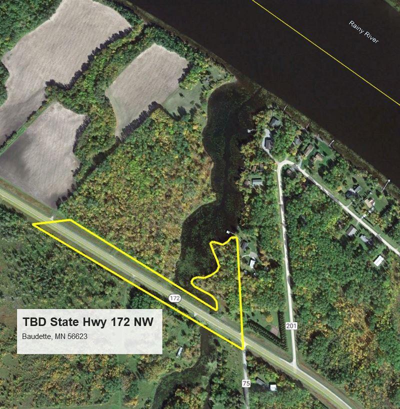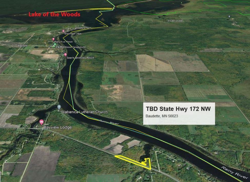 Large wooded lot on sheltered bay close to Rainy River of Baudette - legal shows 8.36 acres with 2.6 acres useable and lots of feet of waterfront. Good access & nice trees - view of the Rainy River, but protected bay. Will consider trades or contract for deed. Surveyed. Lot Dimensions: 128 x 1625 x 740. Owner/Agent